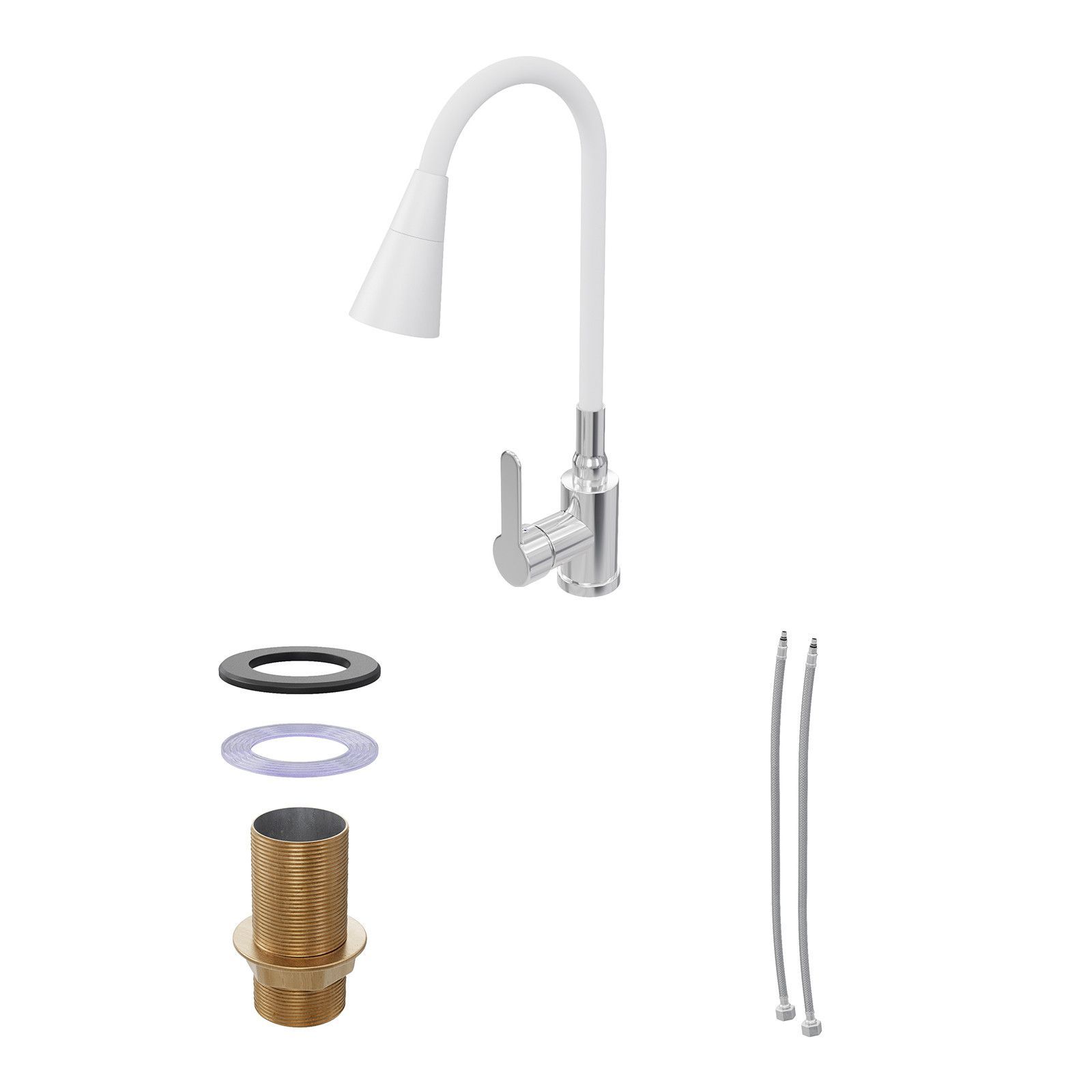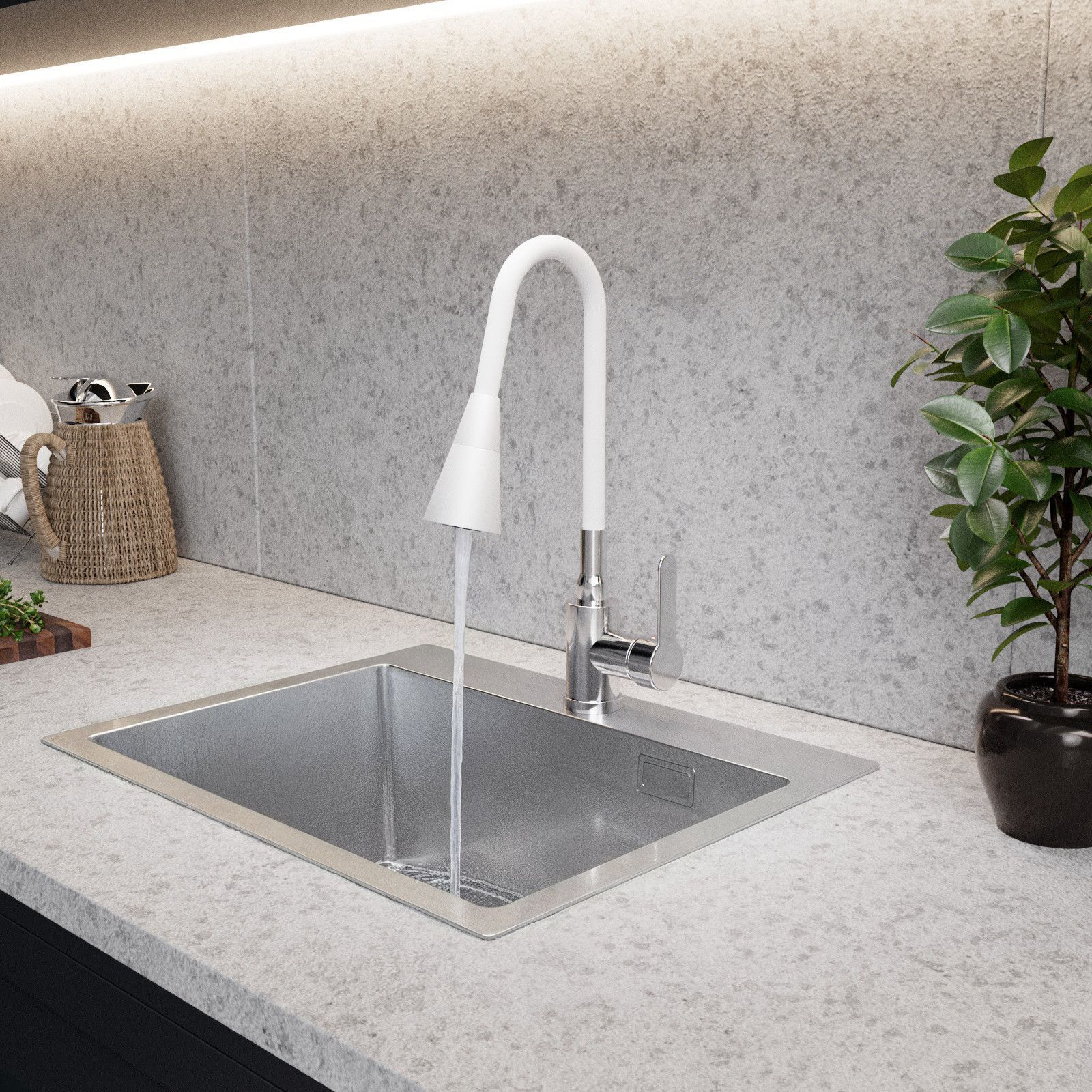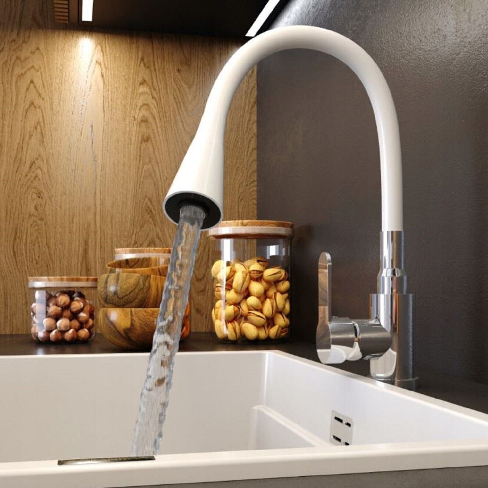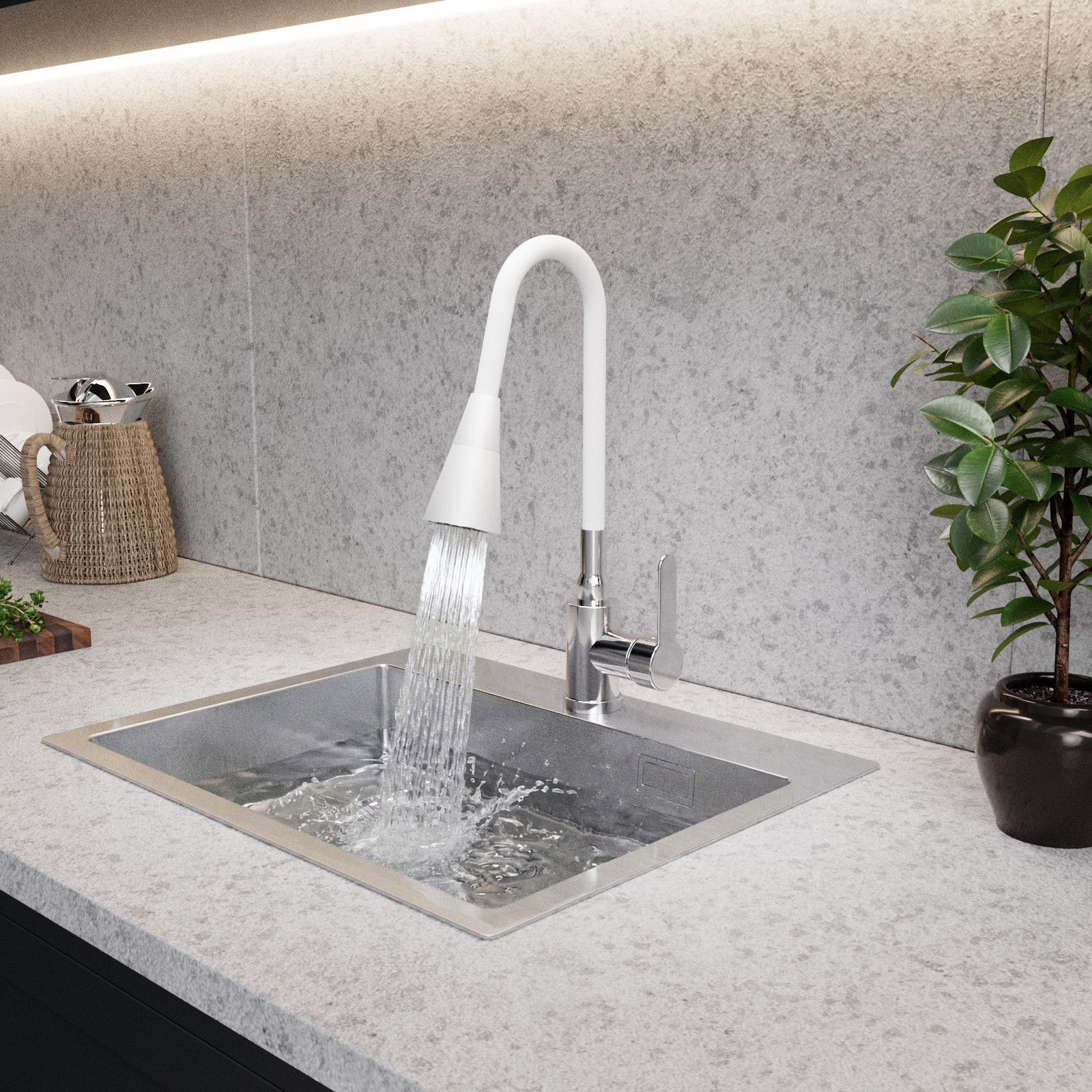 QLS Küchenarmatur Wasserhahn Küche Mischbatterie Flexibel 2 Strahlarten Weiß 10906