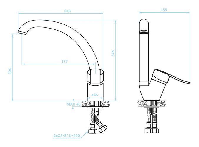 Küchenarmatur Wasserhahn MADERA Küchenmischer für Küche in Chrom Spültischarmatur