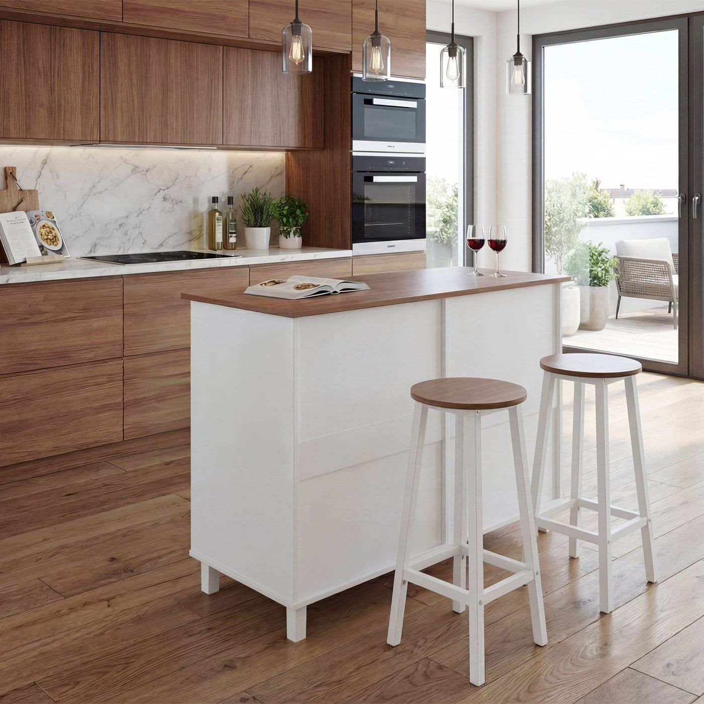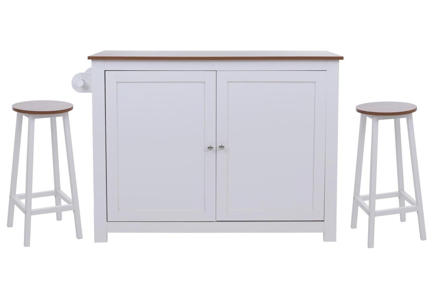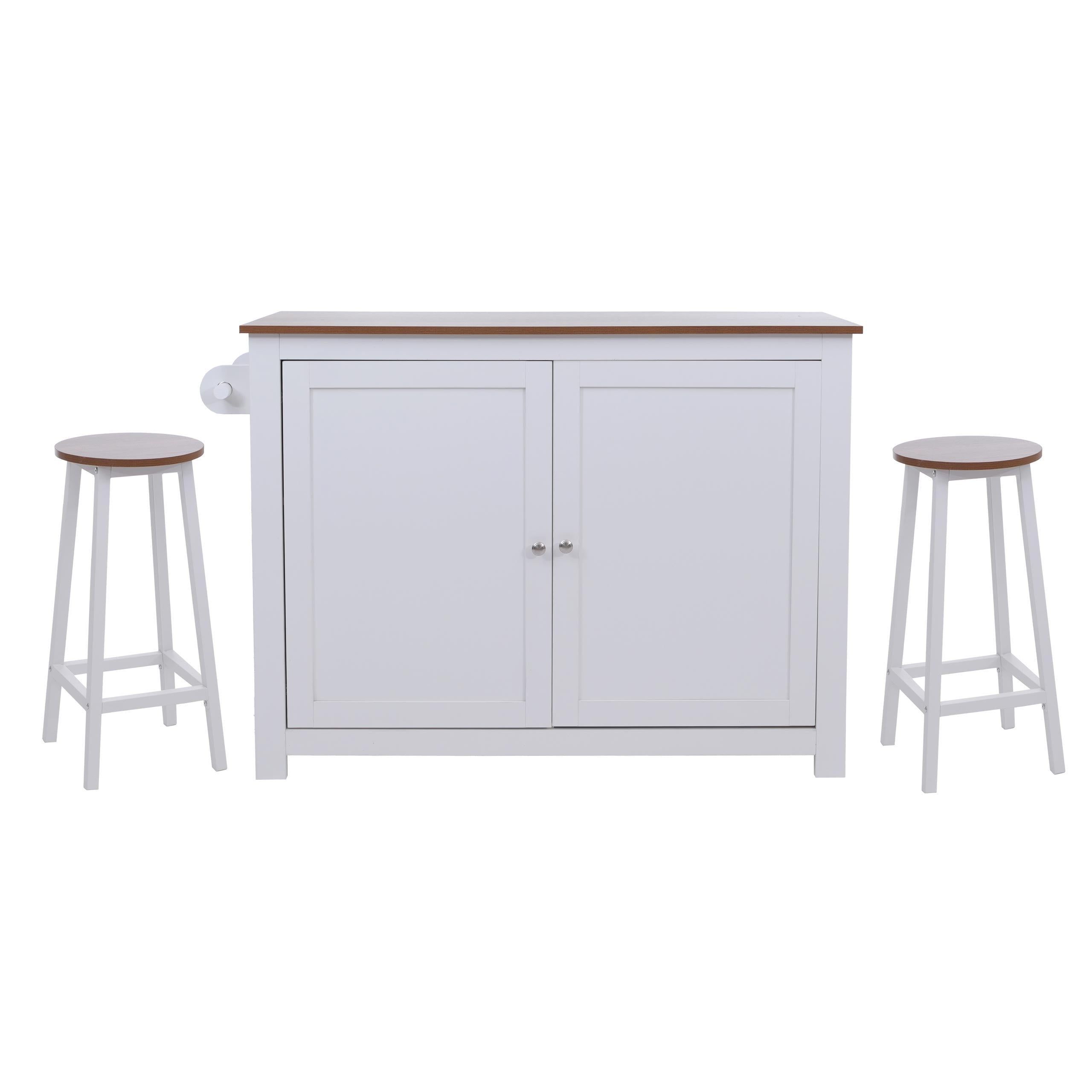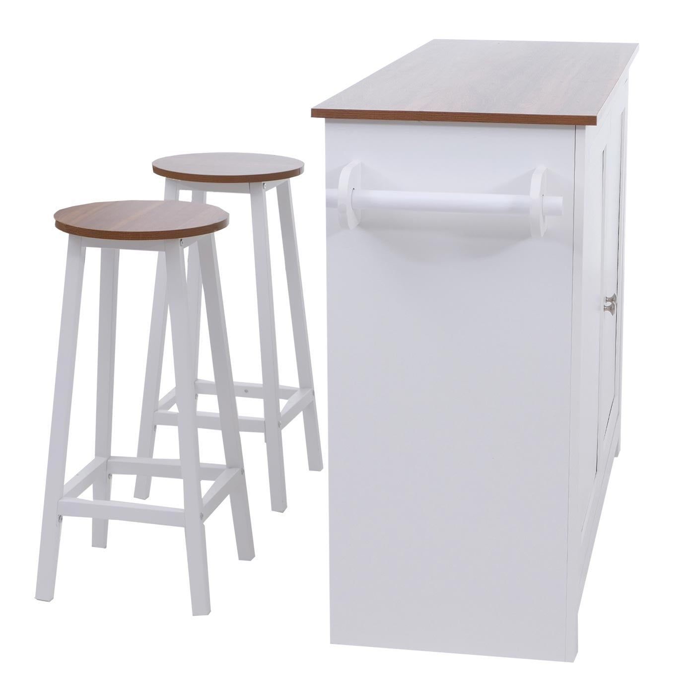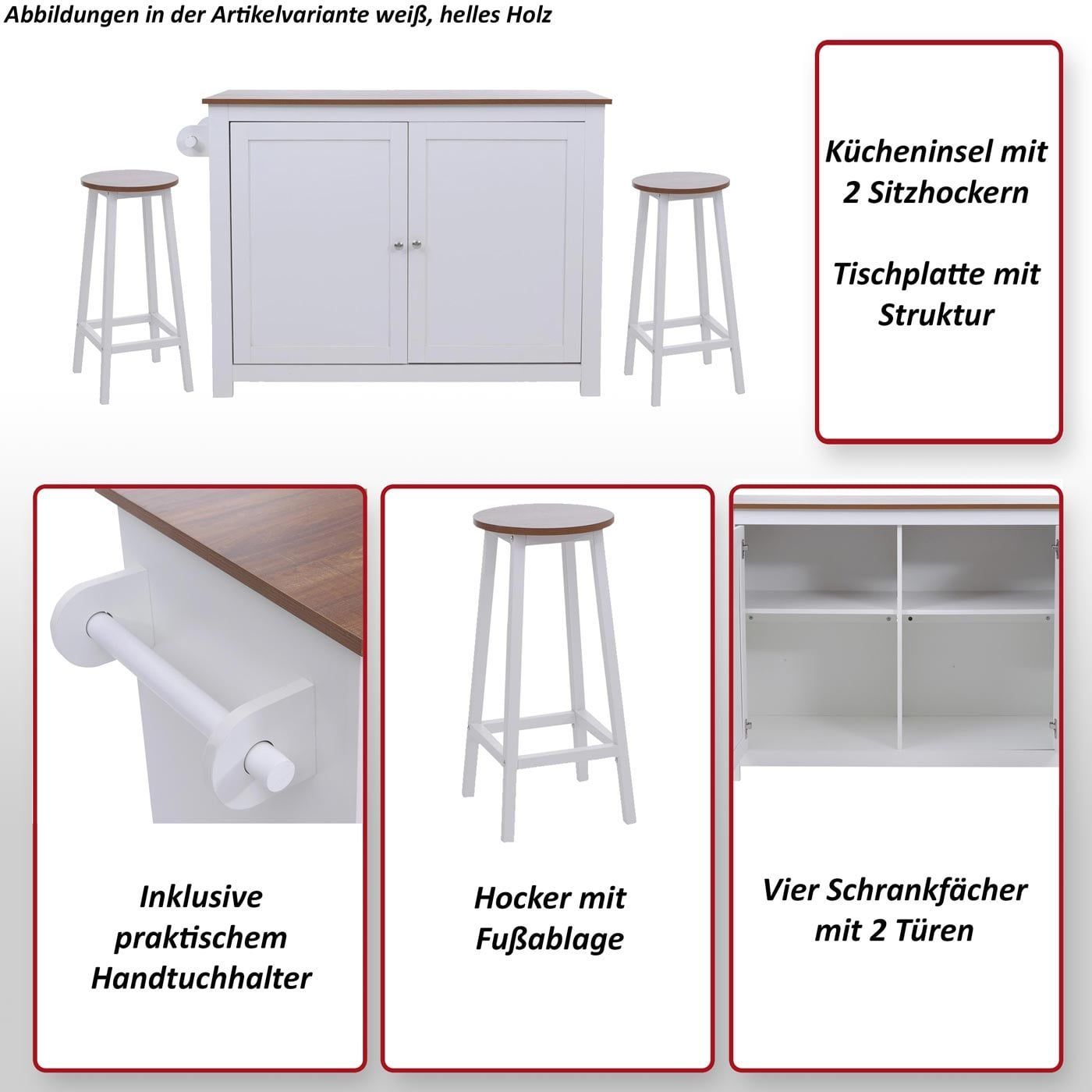 Mendler Kücheninsel HWC-P61 mit 2 Sitzhockern, Schublade Staufächer MDF 90x120x45cm