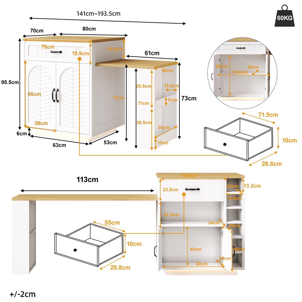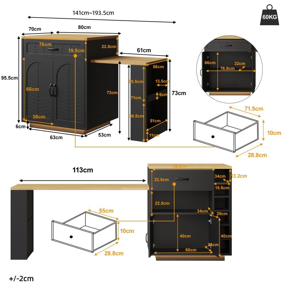 Kücheninsel Küchenschrank Bartischschrank Servierwagen 2 Schubladen