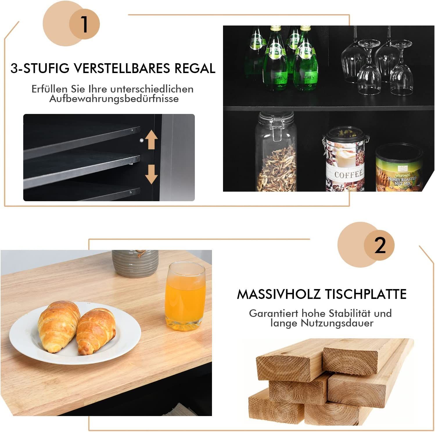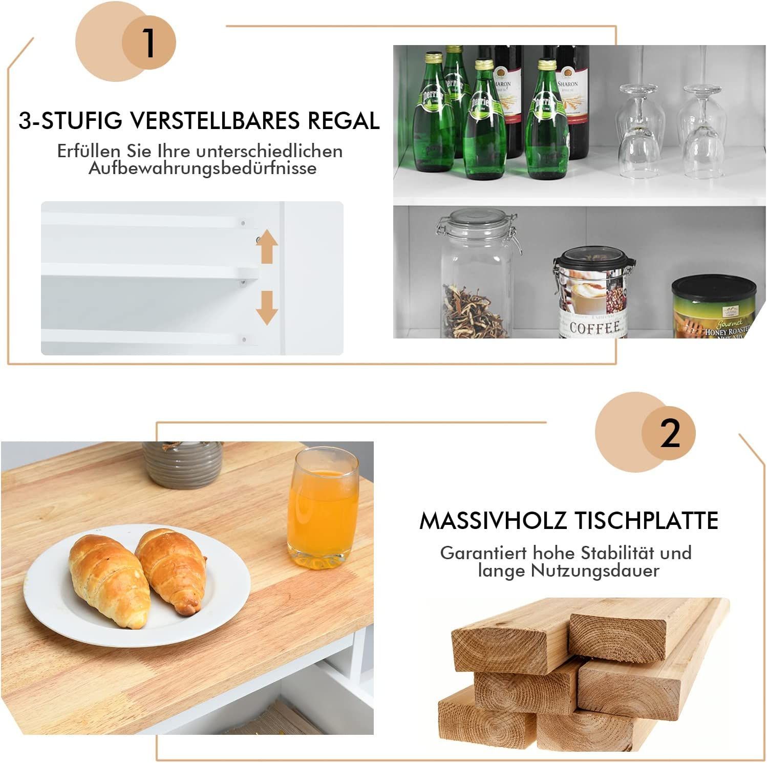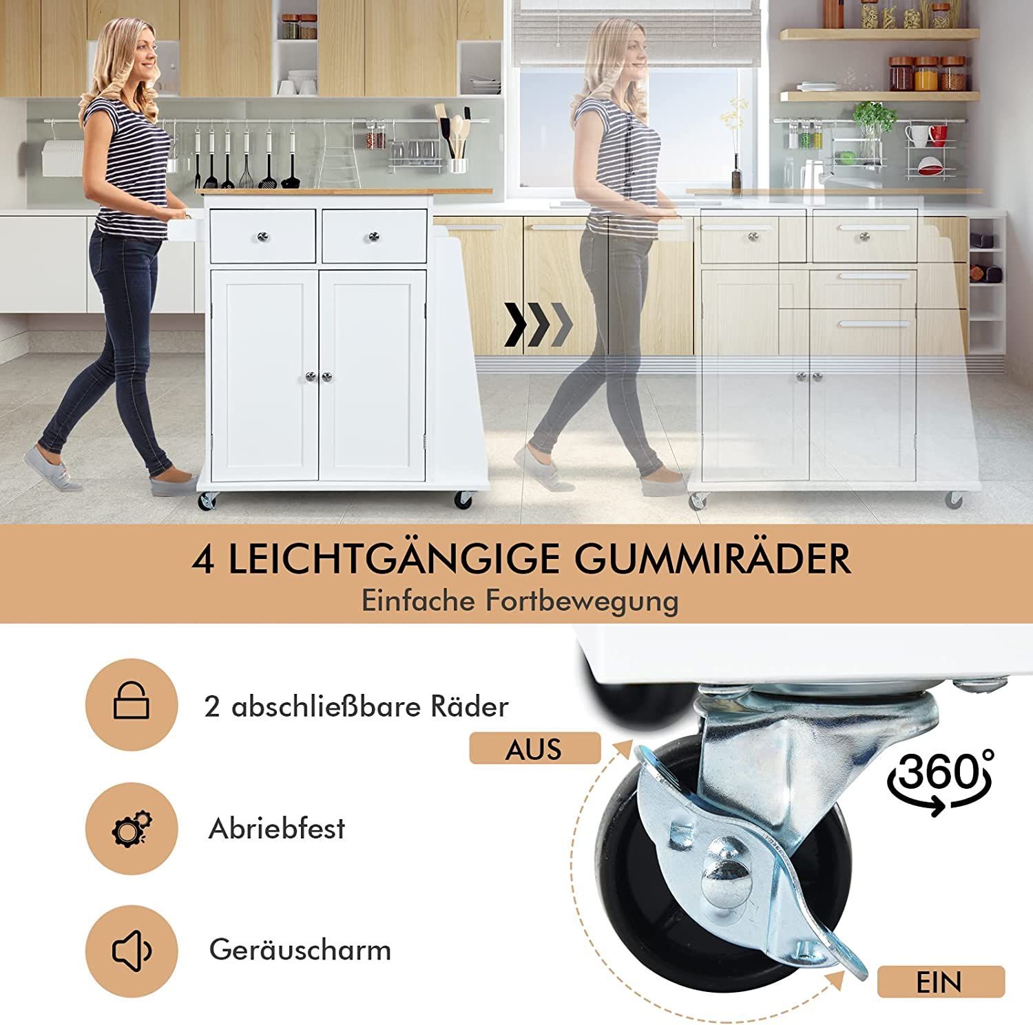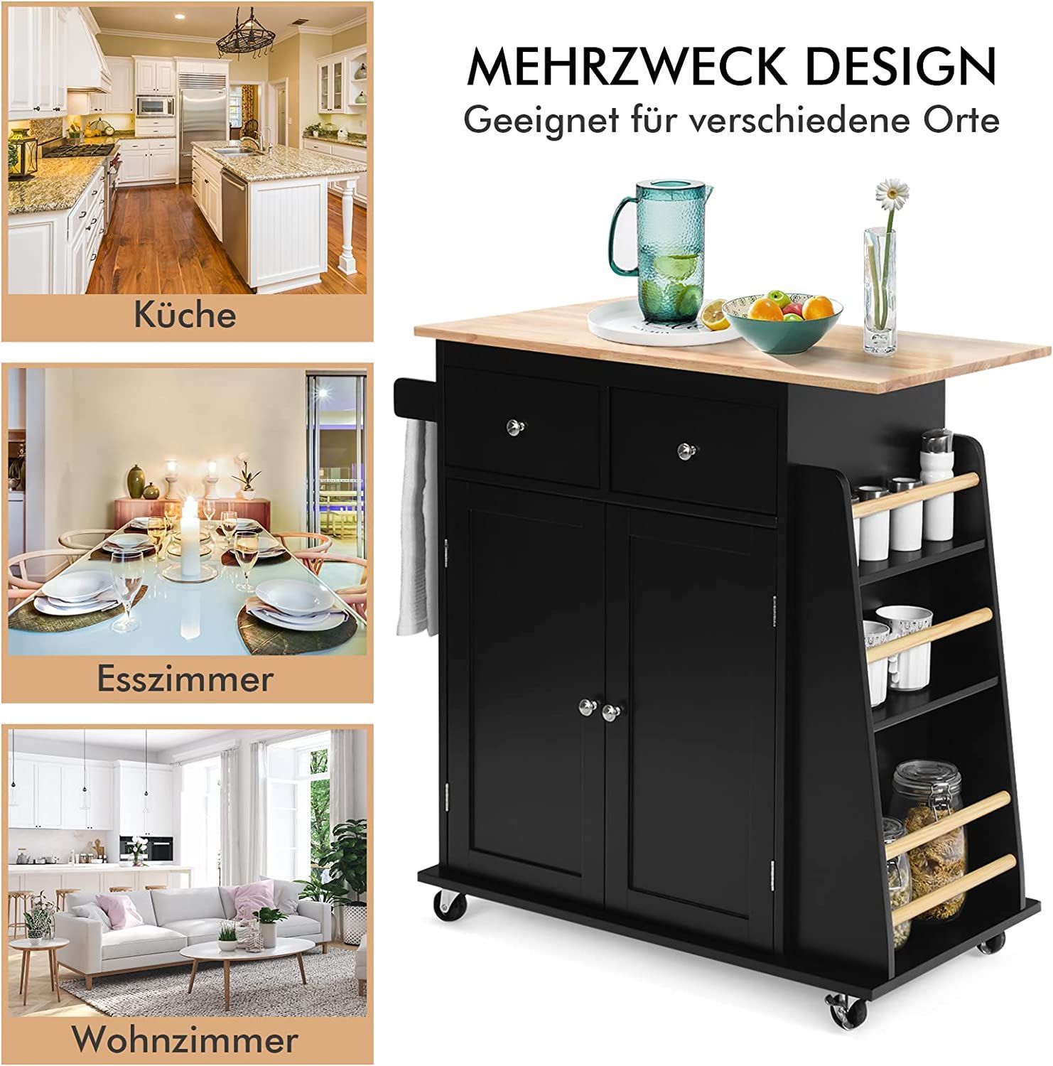 Kücheninsel mit Handtuchhalter, rollender Küchenwagen aus Gummiholz mit 2 Schubladen