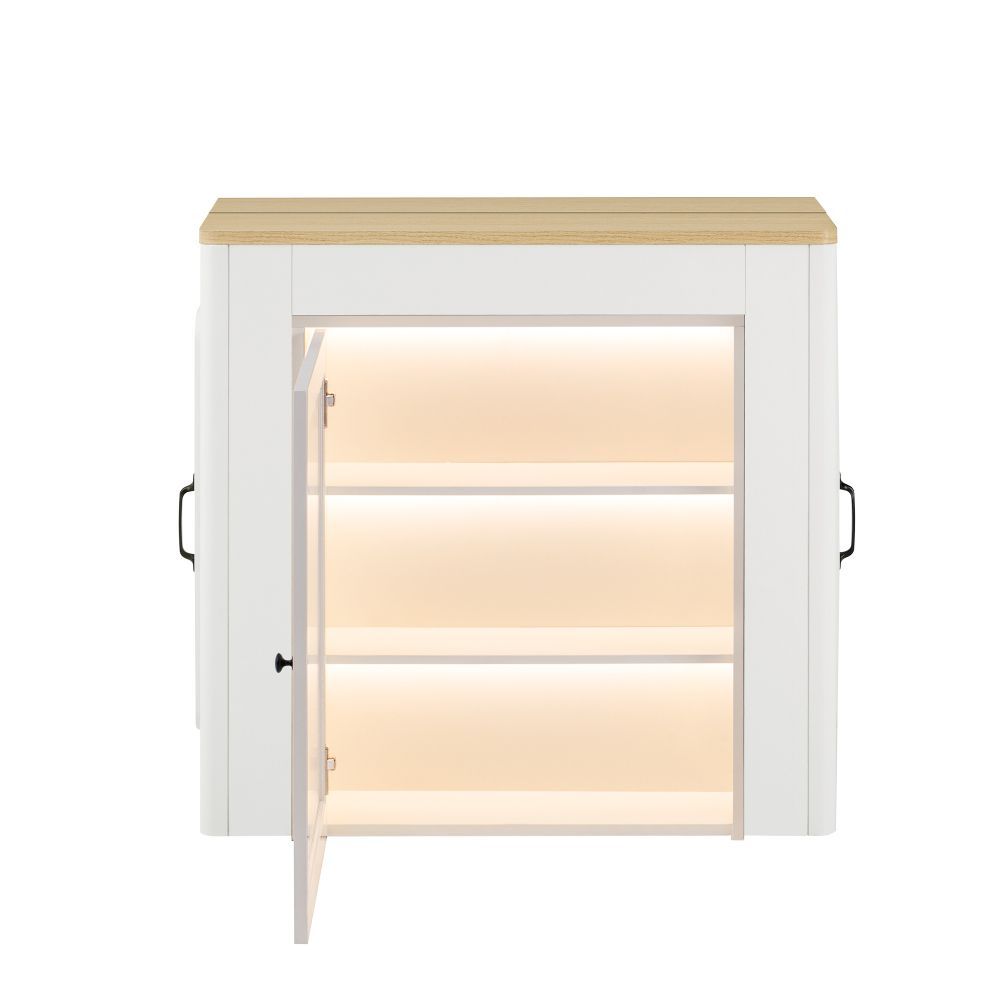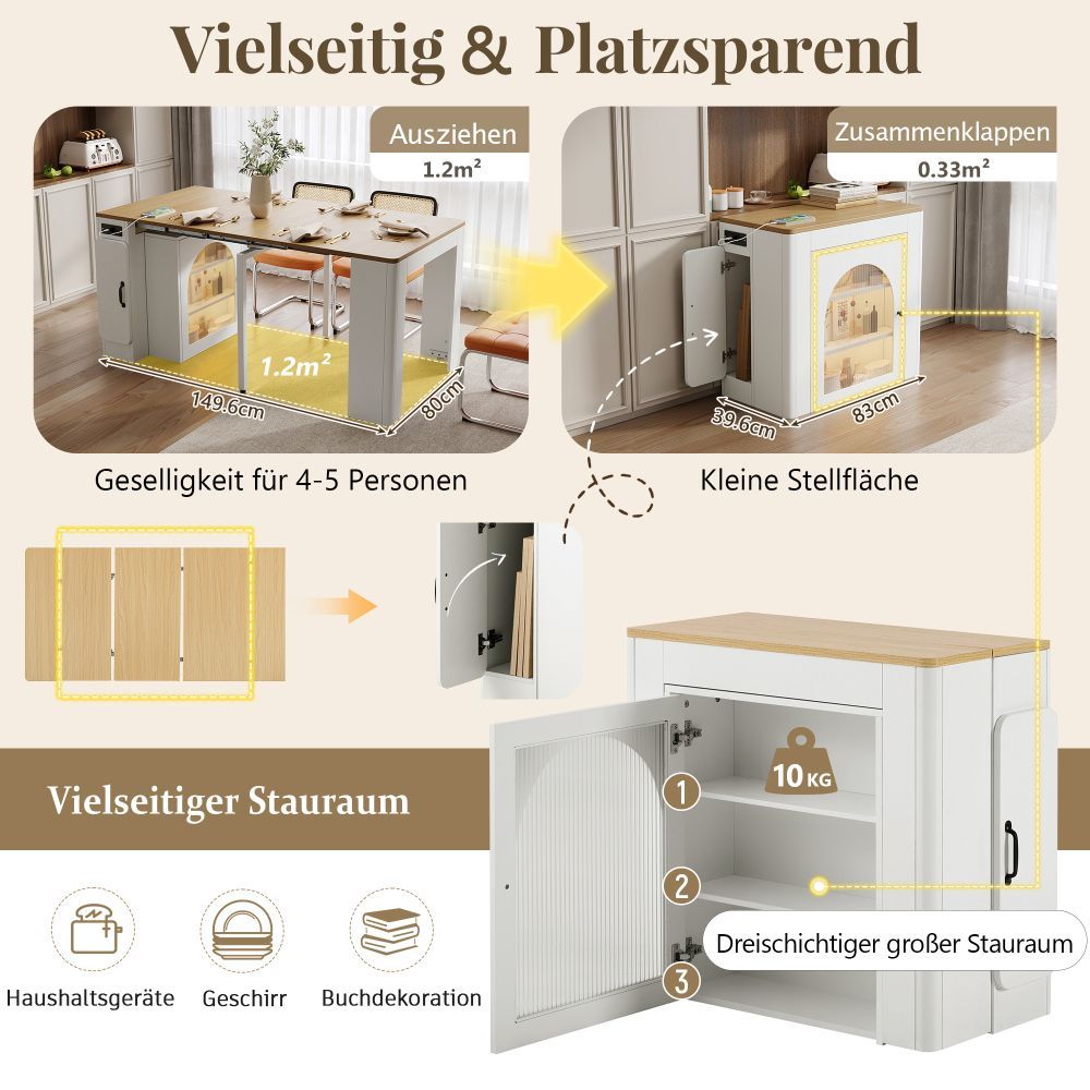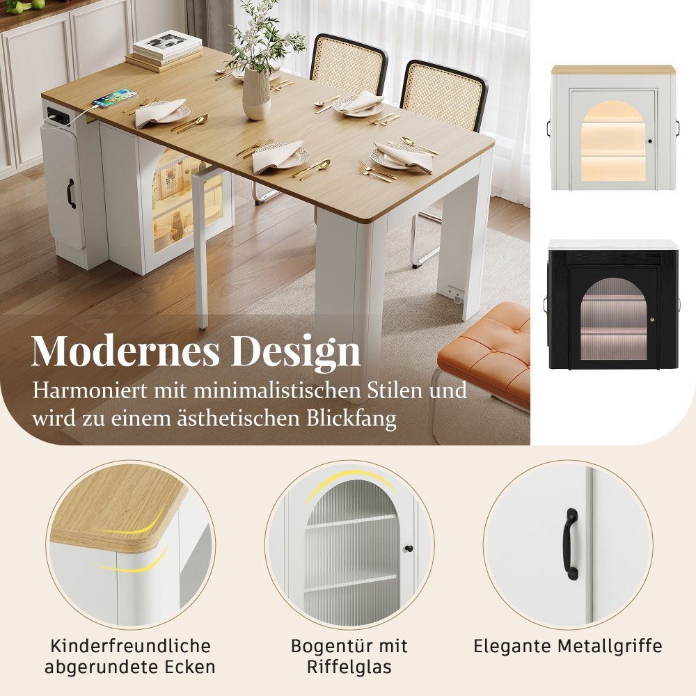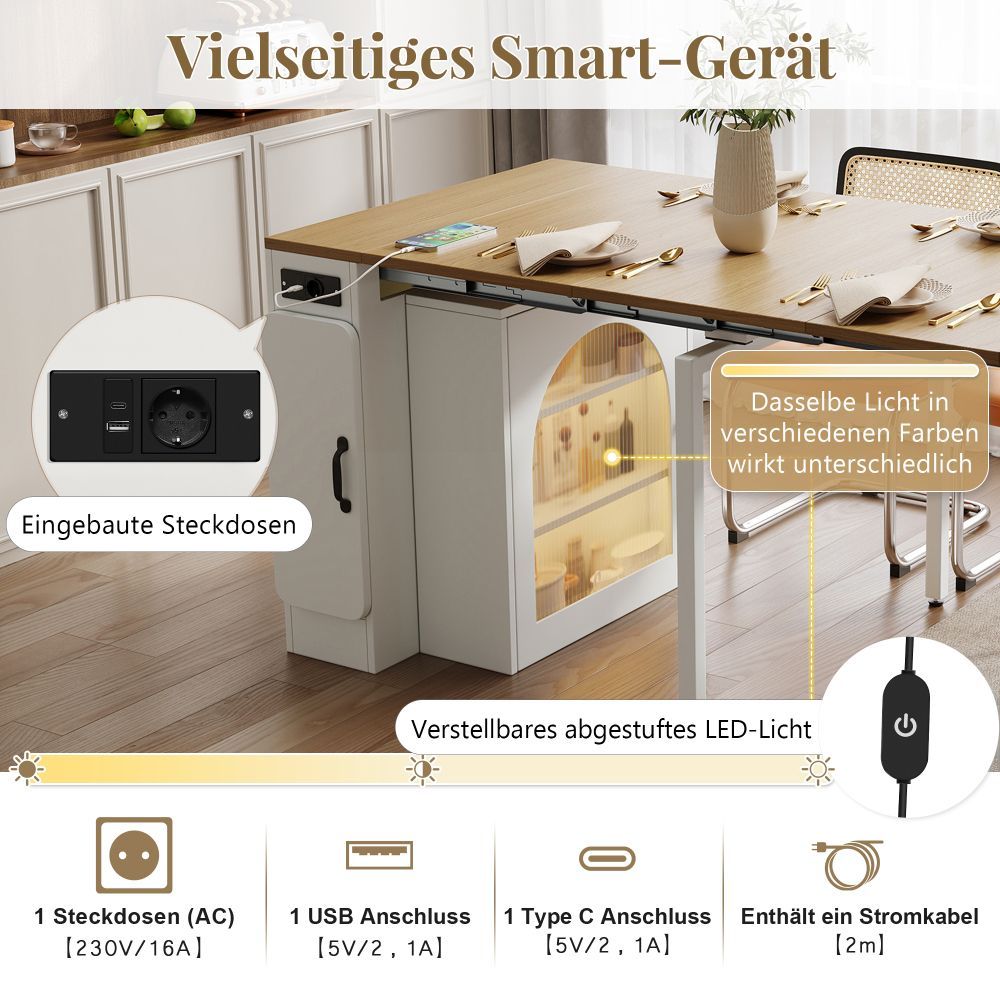 Kücheninsel mit Rollen, ausziehbarer Bartisch, Sideboard mit Steckdosenleiste