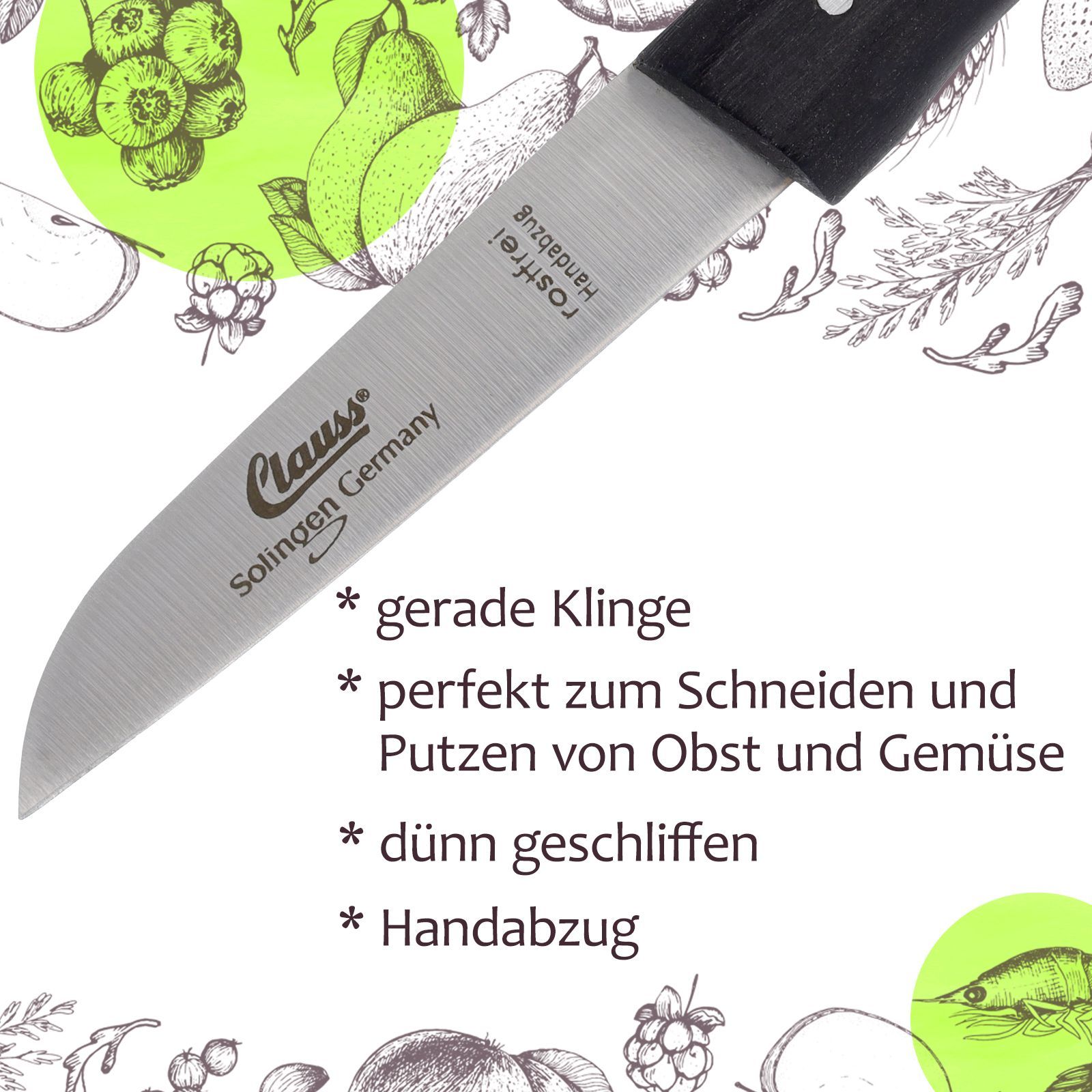 Küchenmesser gerade rostfrei klein Holzgriff Buche schwarz scharf Obst Gemüse