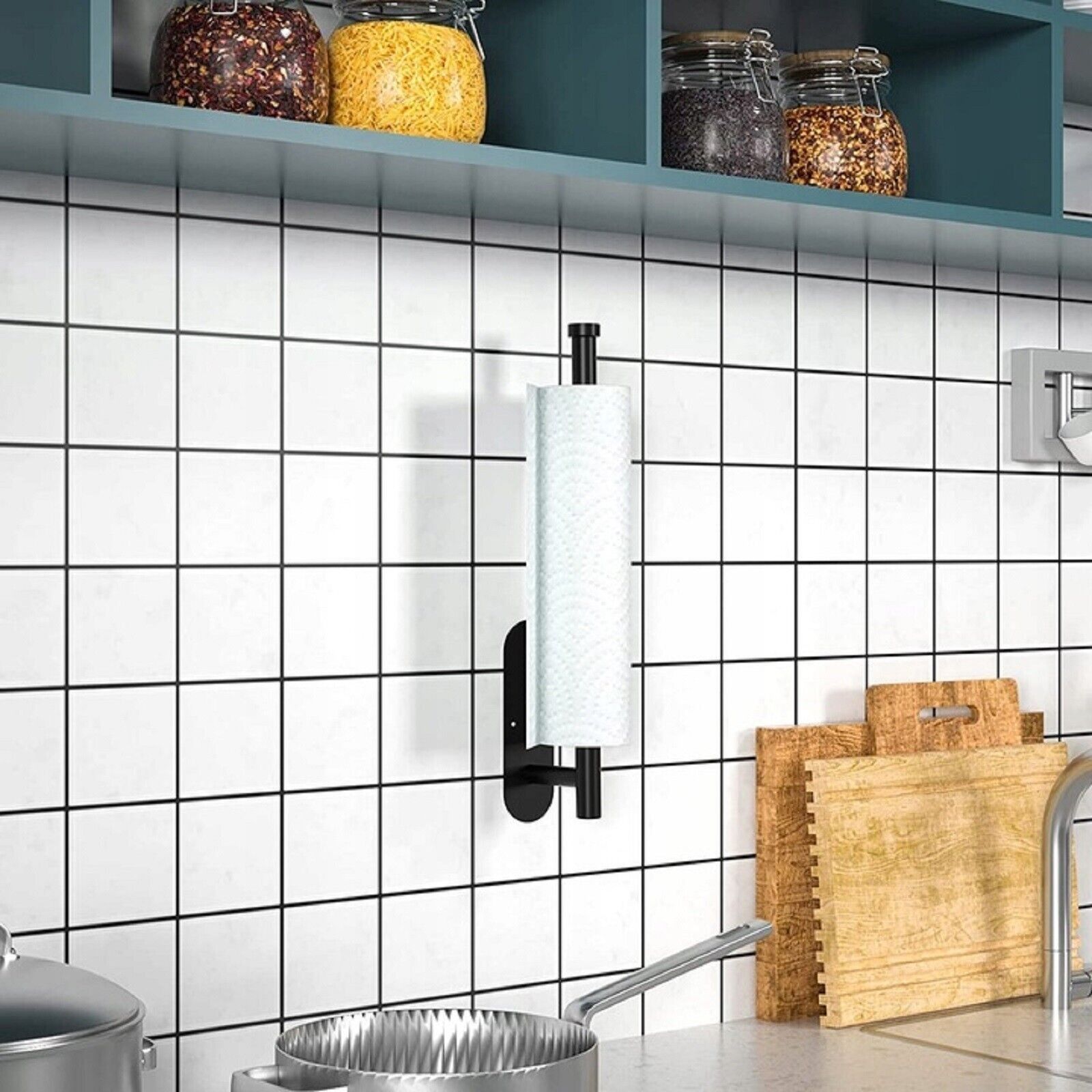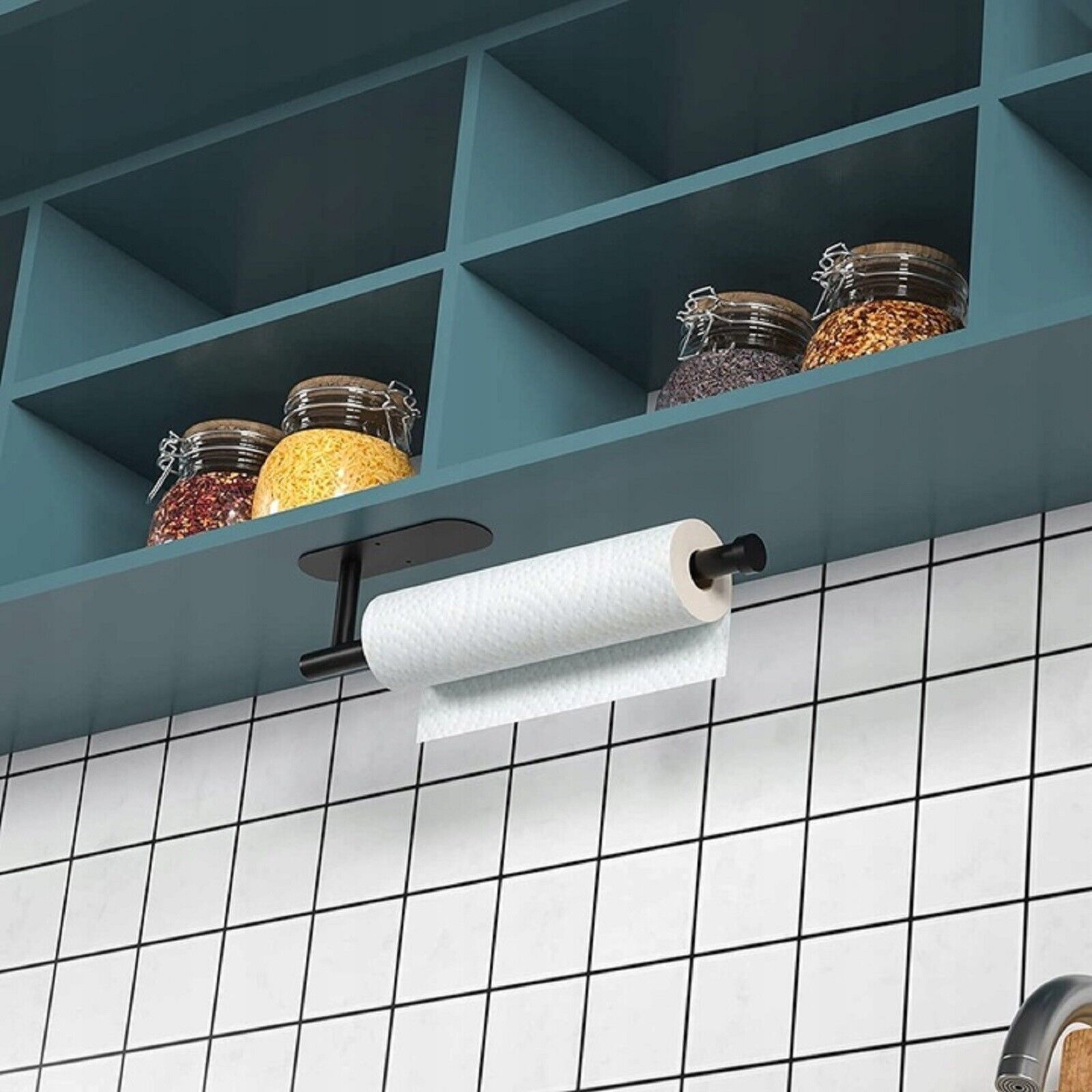 QLS Küchenrollenhalter Handtuchhalter Küchenpapierhalter ohne Bohren - Schwarz 10342