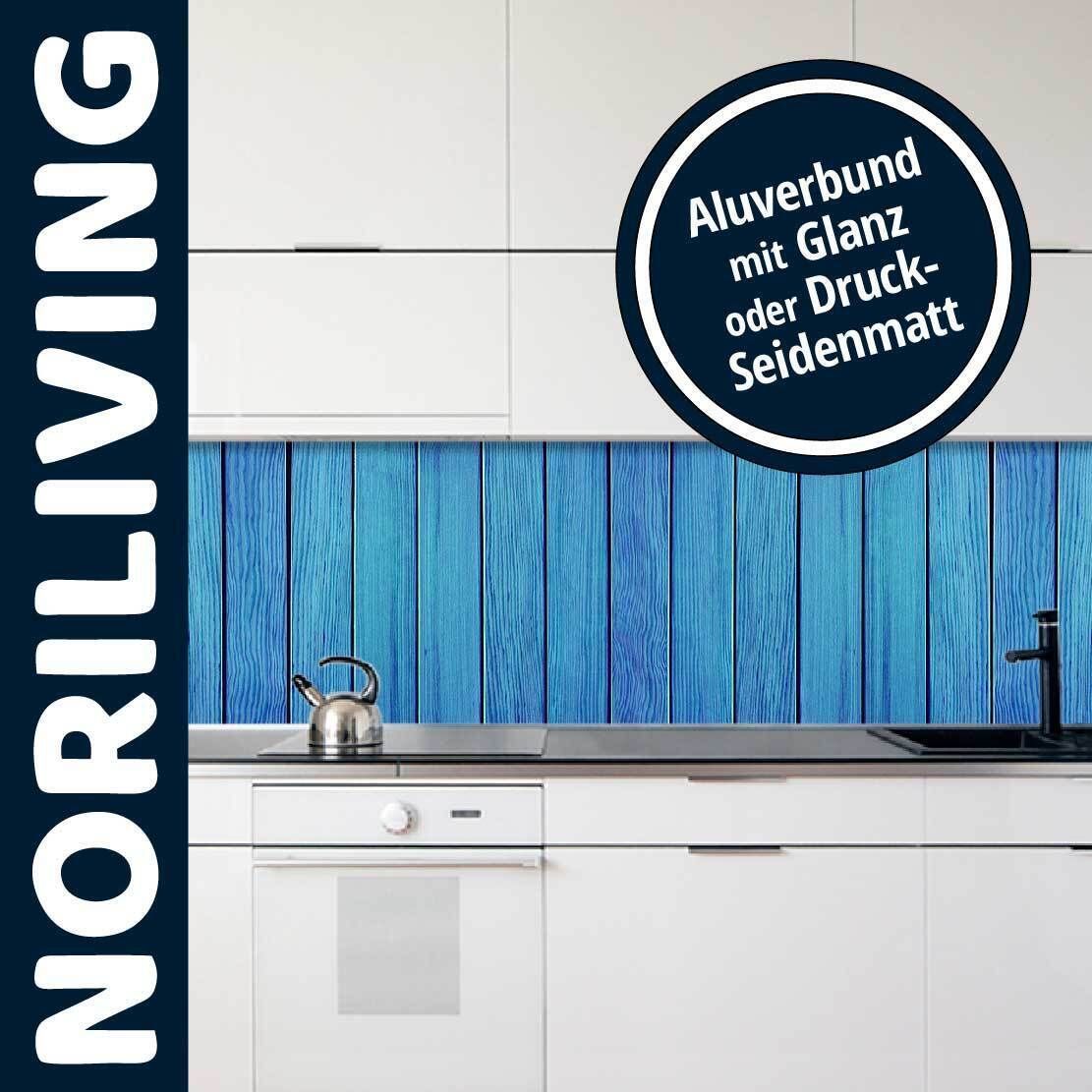Küchenrückwand Alu Küchenrückwände Spritzschutz bis 300cm Holzzaun blau 470