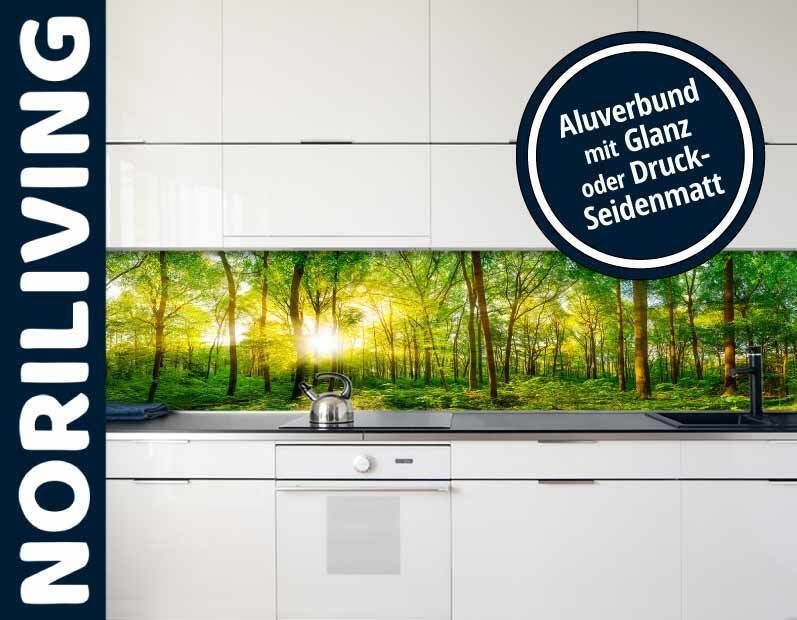 Küchenrückwand Aluverbund Spritzschutz Wandverkleidung Küche Morgen im Wald 123