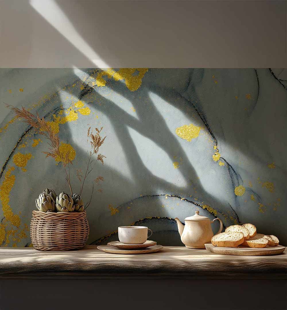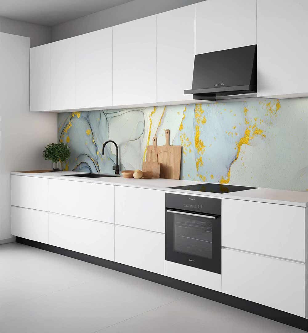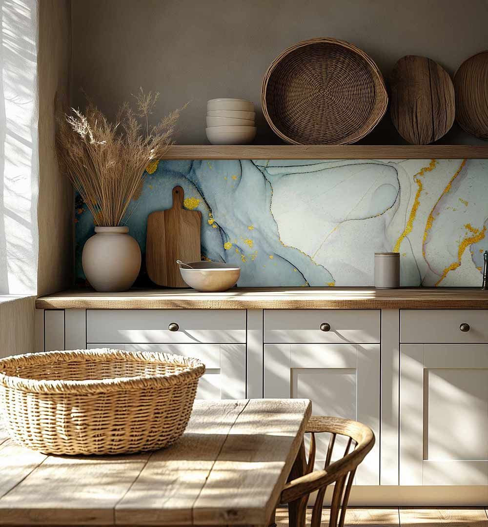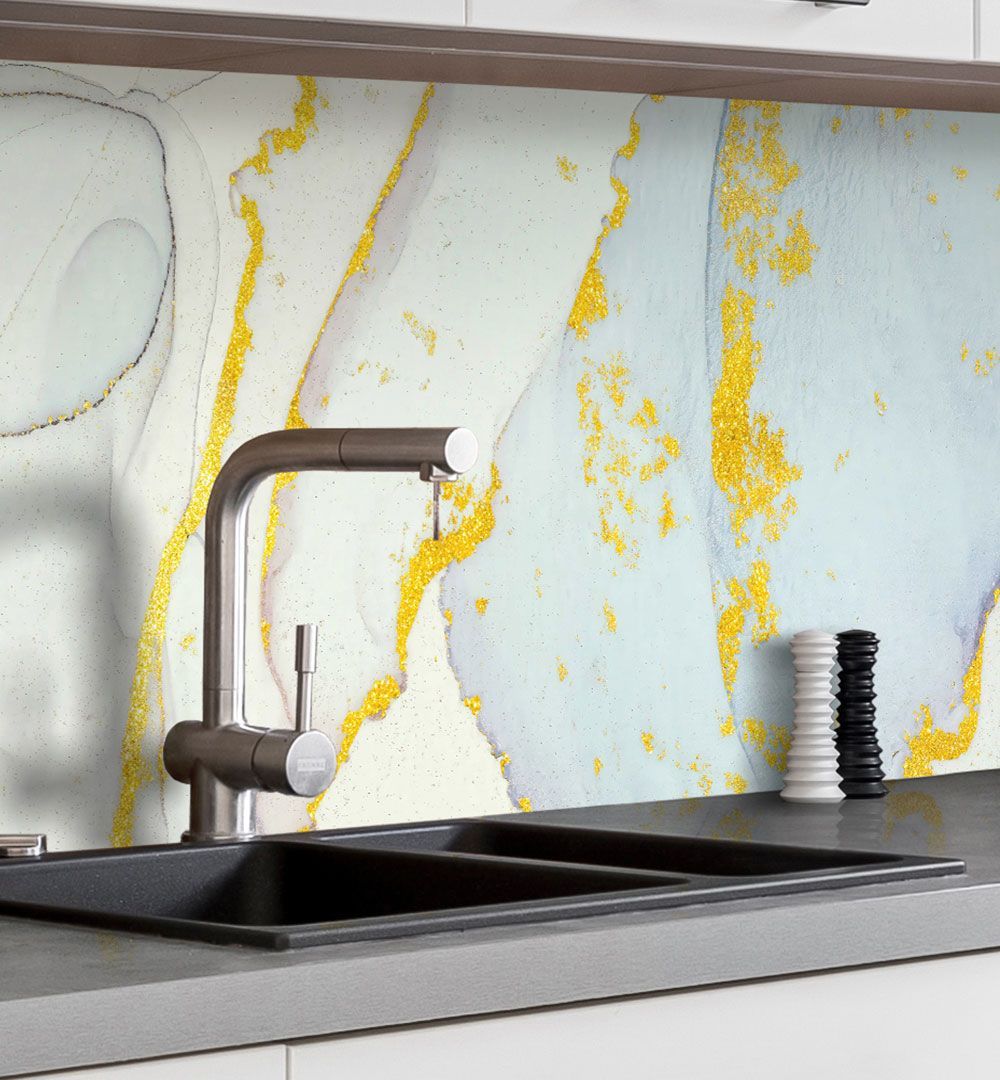 Küchenrückwand Marmor blau gold selbstklebend Spritzschutz Folie