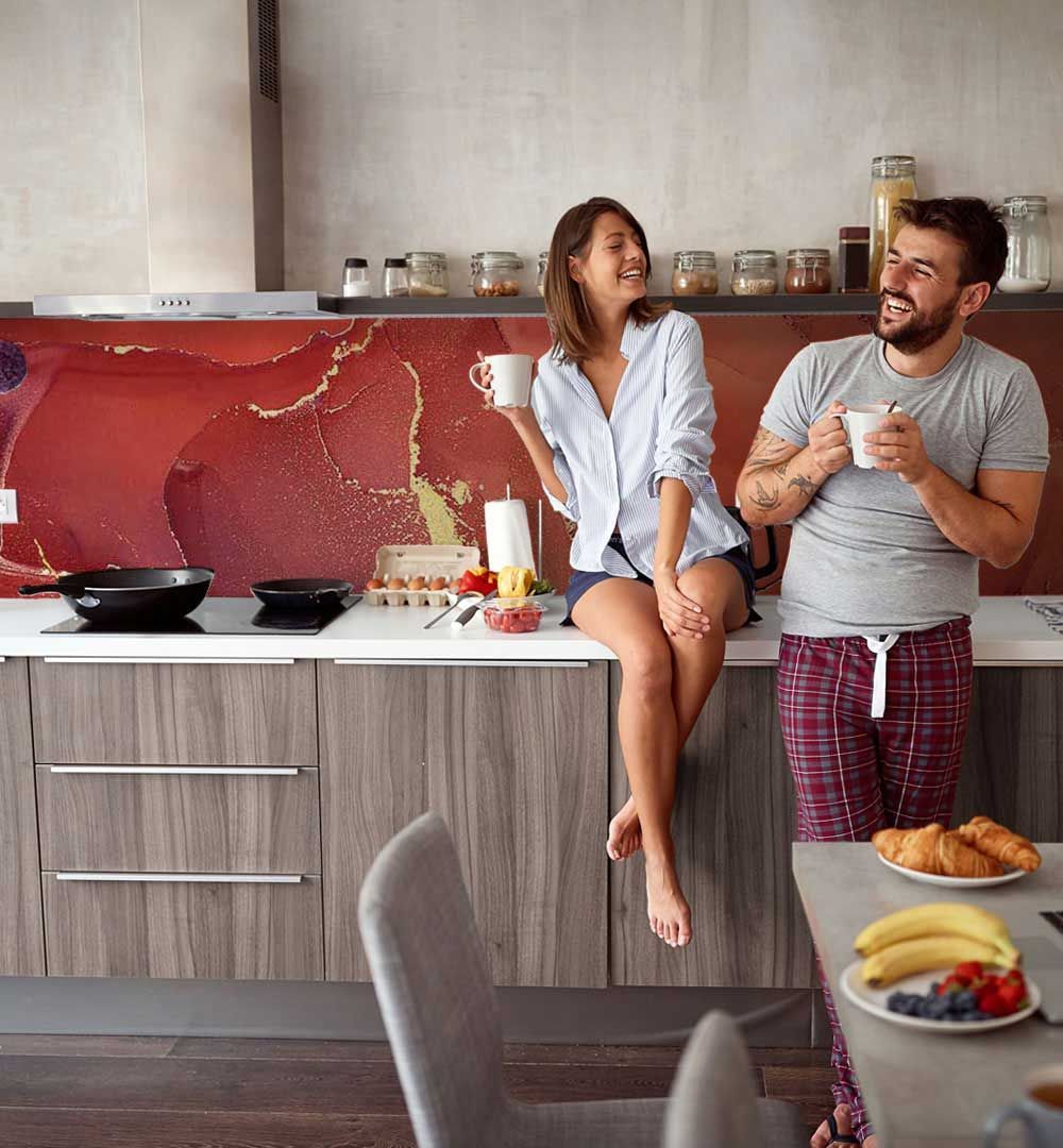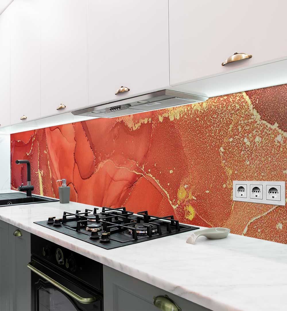 Küchenrückwand Marmor rot gold selbstklebend Spritzschutz Folie