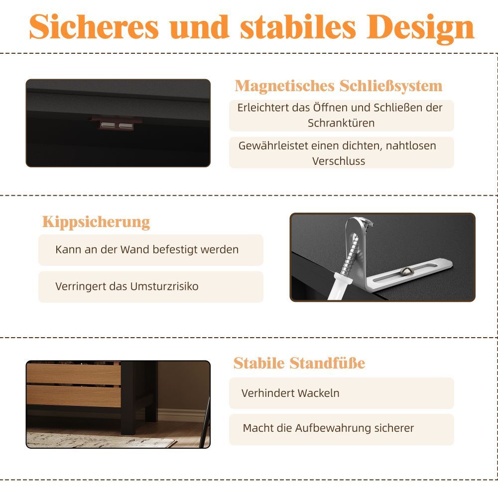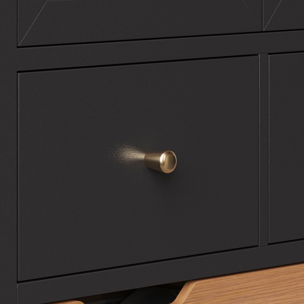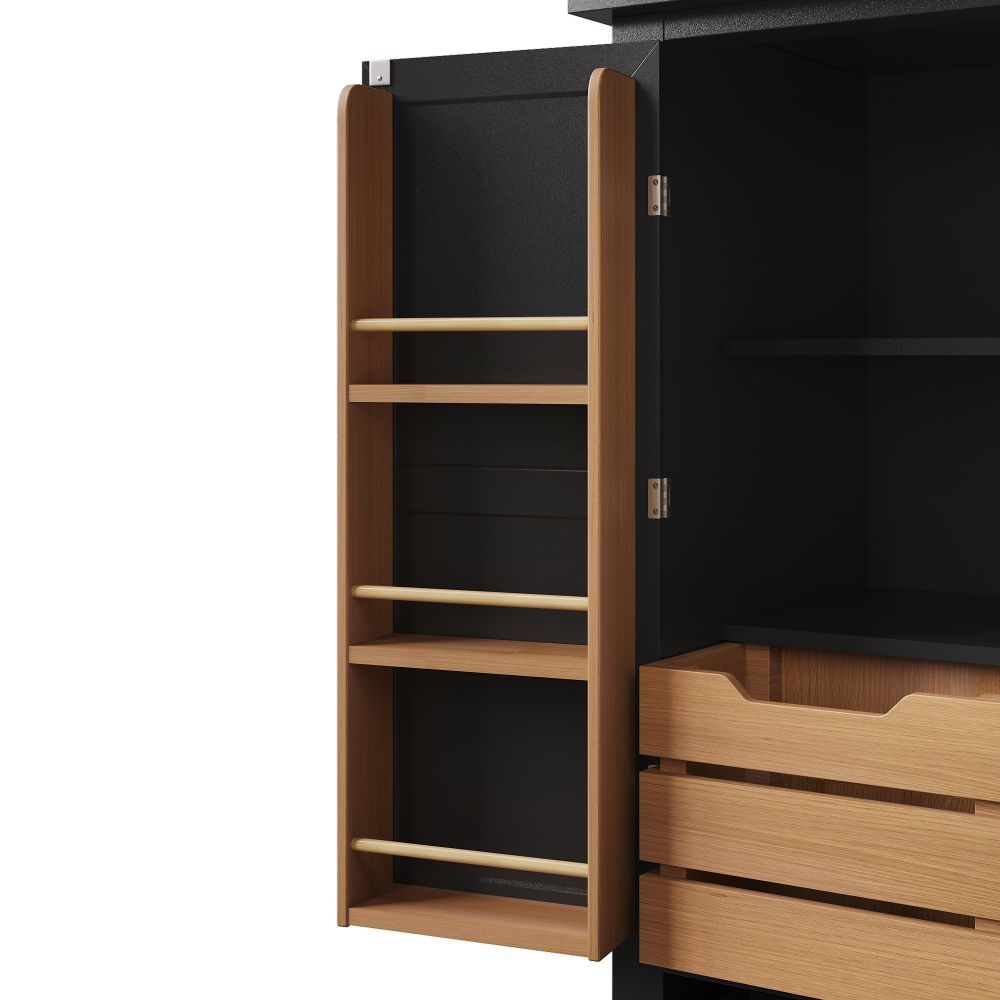 Dieser Küchenschrank aus MDF und Metall bietet vielseitigen Stauraum für Küche und Essbereich. Mit zwei Türen und fünf Schubladen eignet er sich ideal zur Aufbewahrung von Geschirr, Vorräten und Küchenutensilien. Das hohe Buffet verbindet Funktionalität mit einem modernen Design und passt zu verschiedenen Einrichtungsstilen.