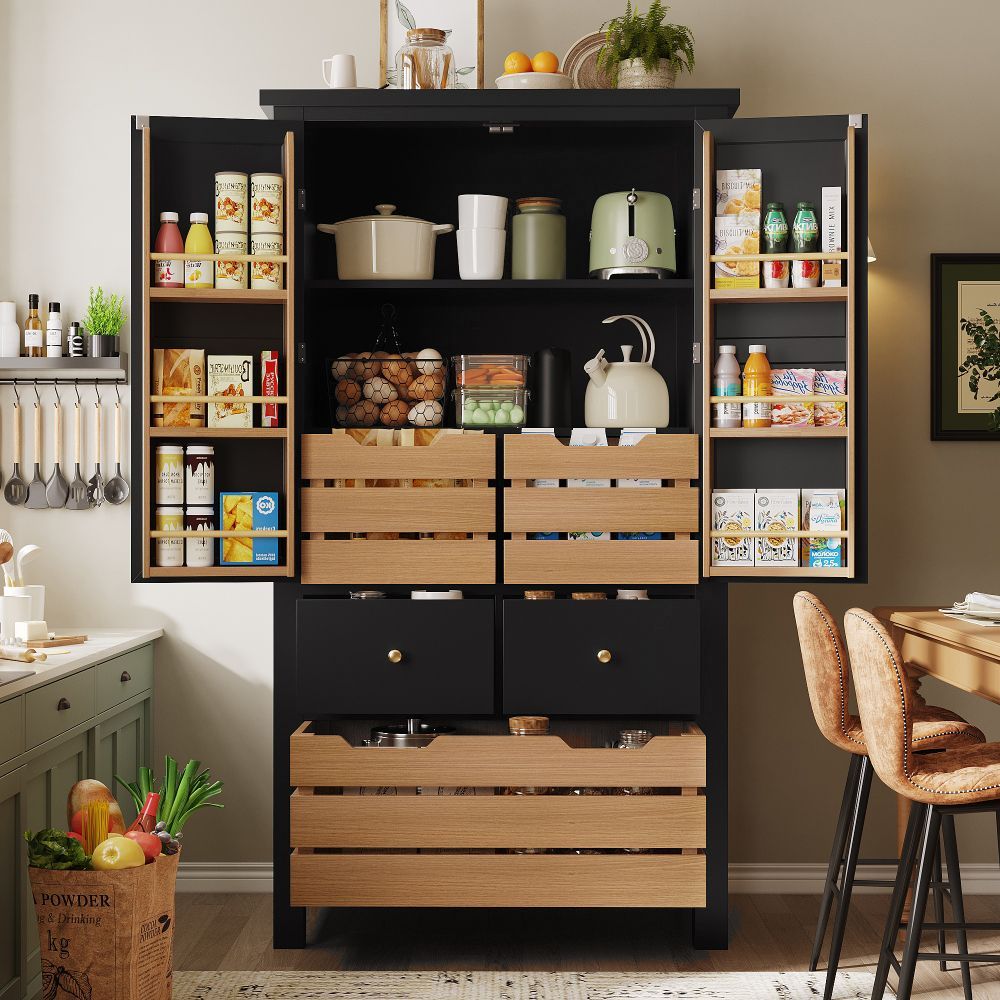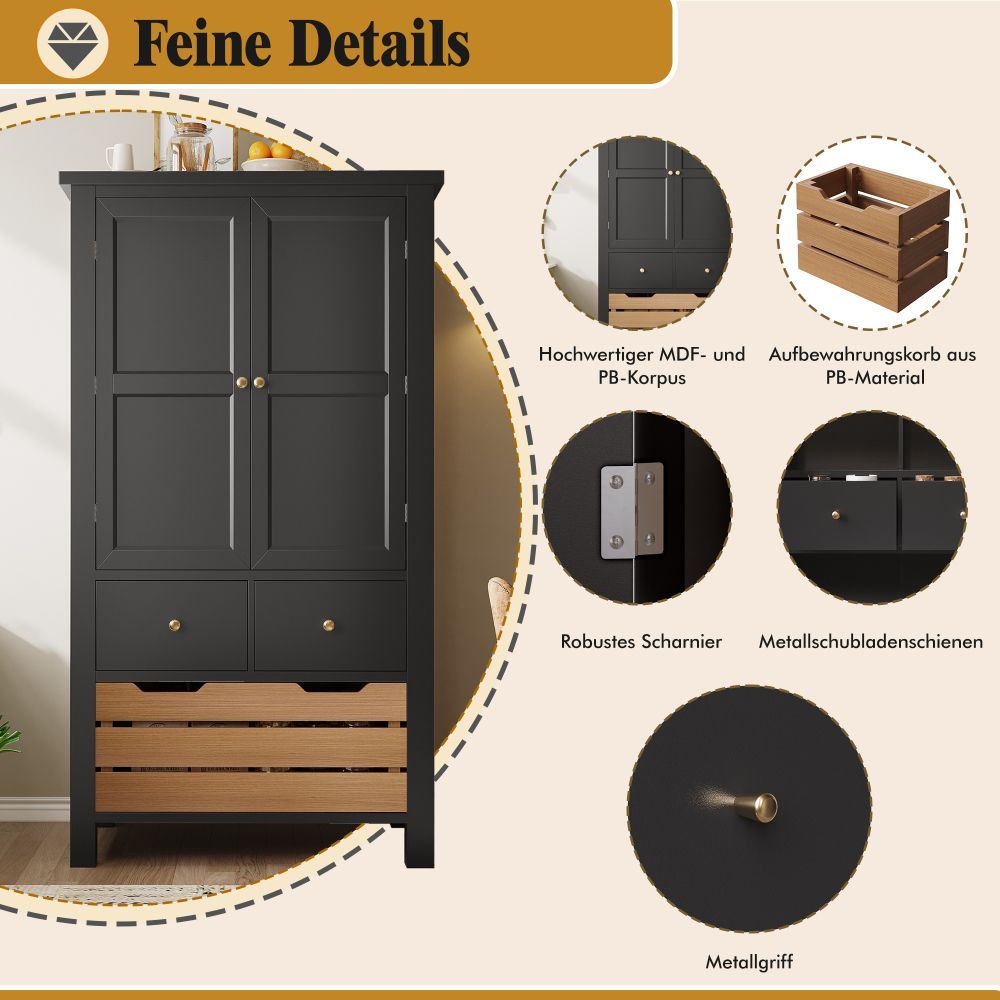 Küchenschrank 80x40x140cm Hochschrank Buffet mit 2 Türen 5 Schubladen