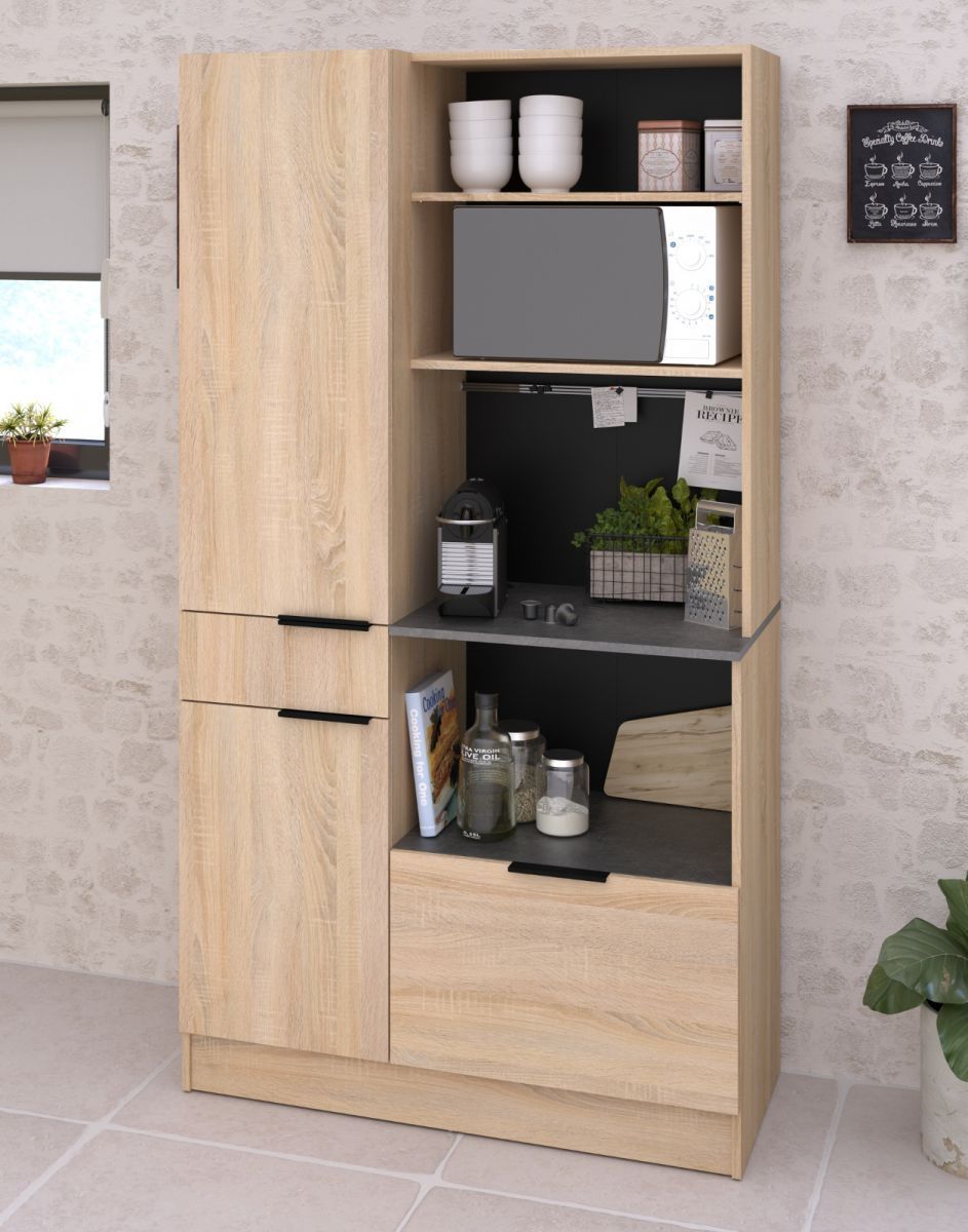Küchenschrank Buffetschrank Single Küche Eiche Beton grau Parisot Fumay 100 x 186 cm