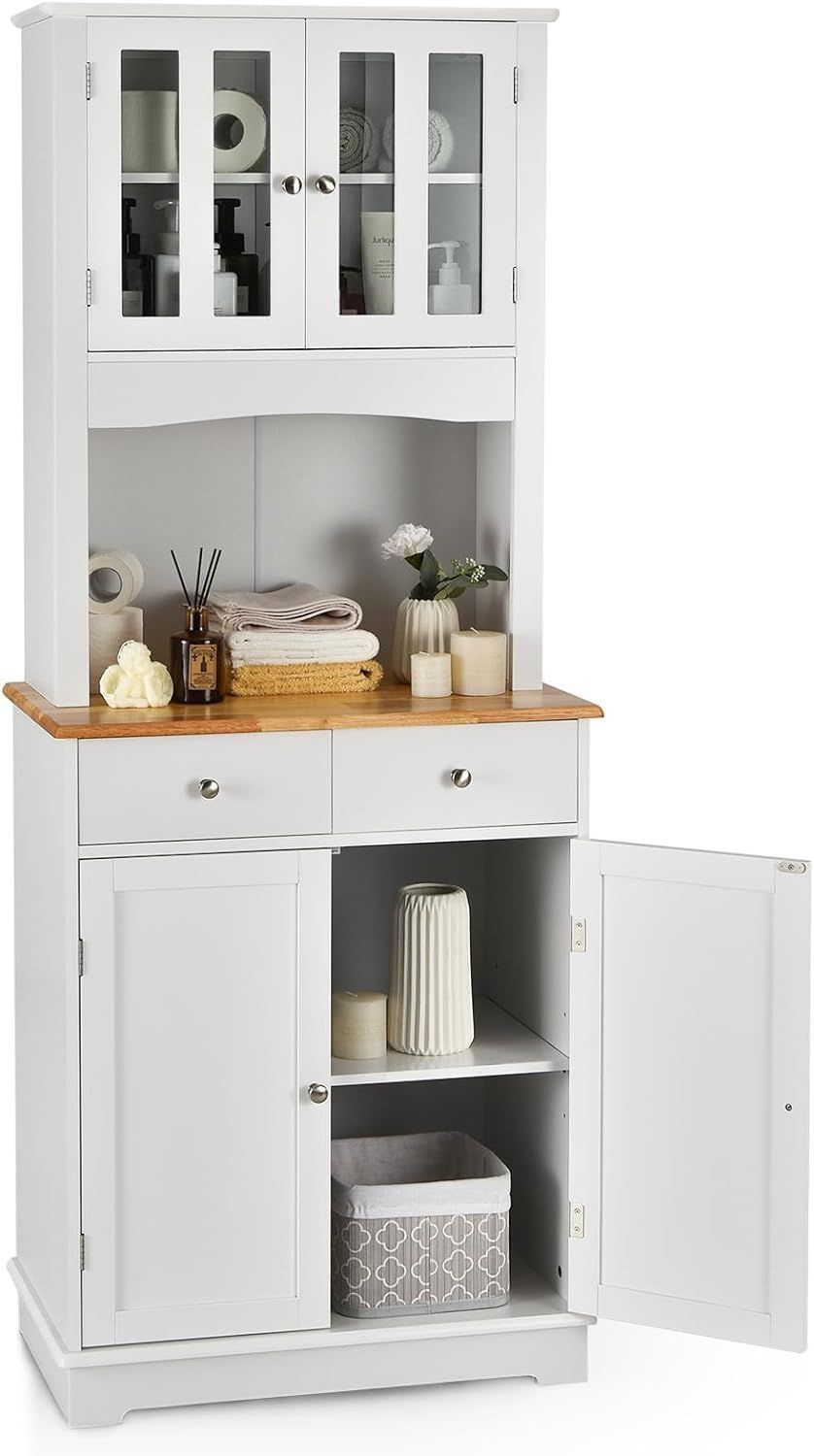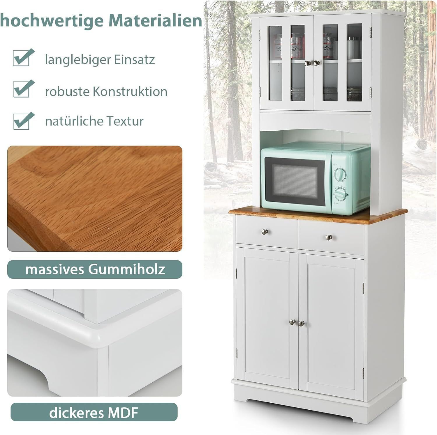 Küchenschrank hoch, 170 cm Buffetschrank Holz, Hochschrank mit 2 Schubladen, Weiß