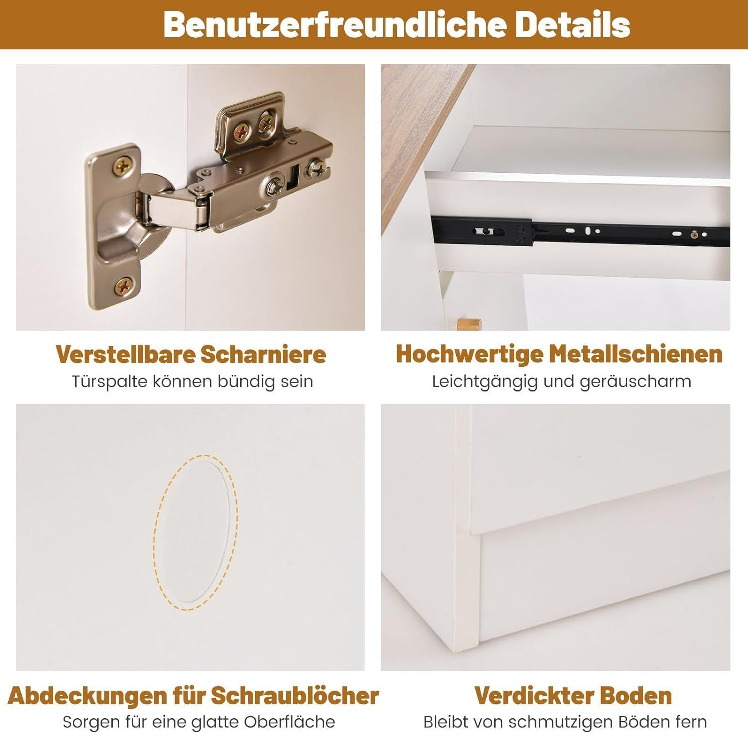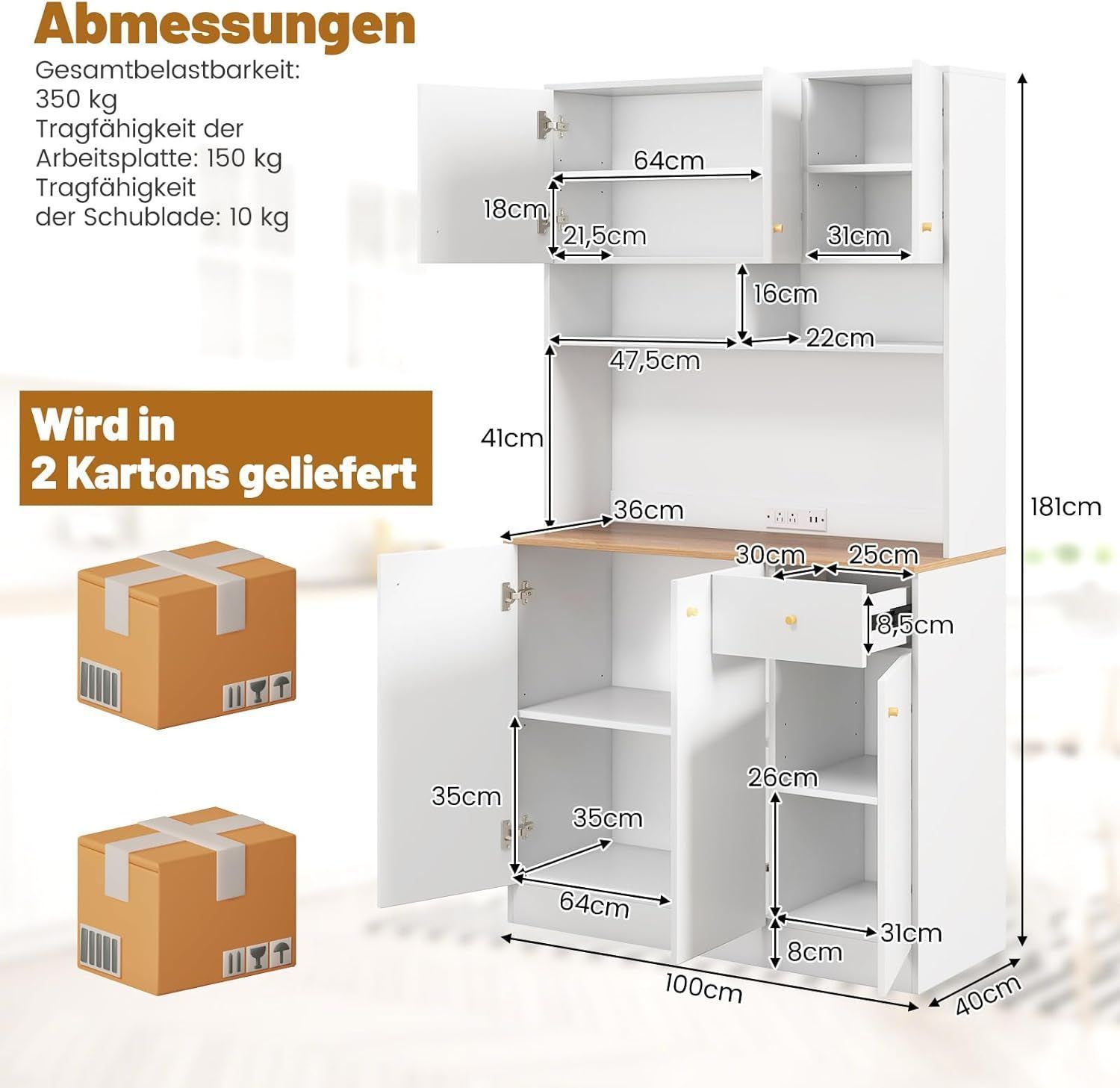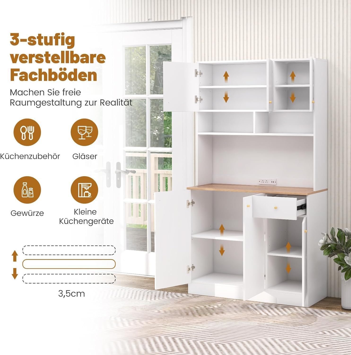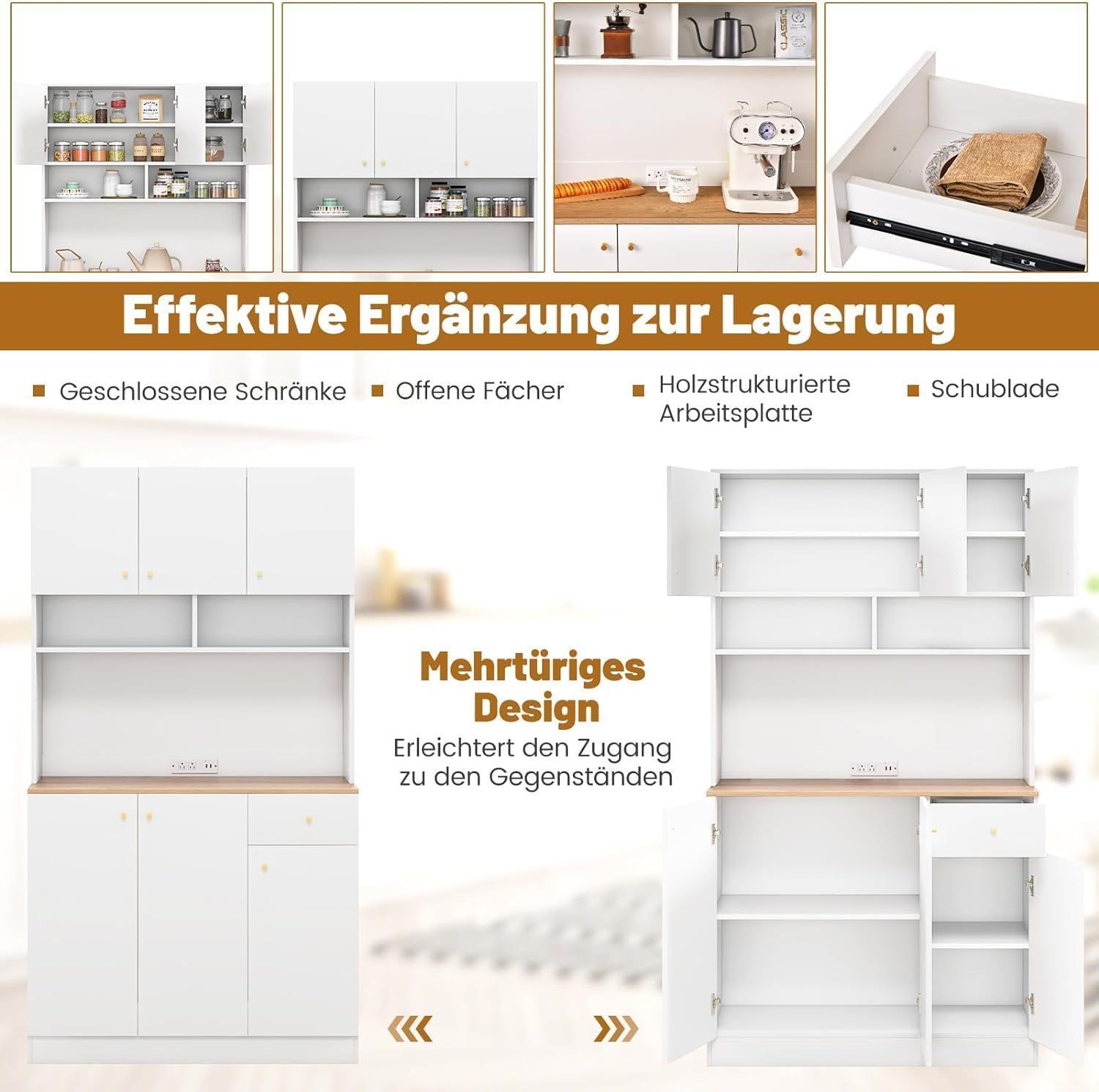 Küchenschrank Holz, Buffetschrank mit Steckdosen & USB-Anschlßssen, Hochschrank