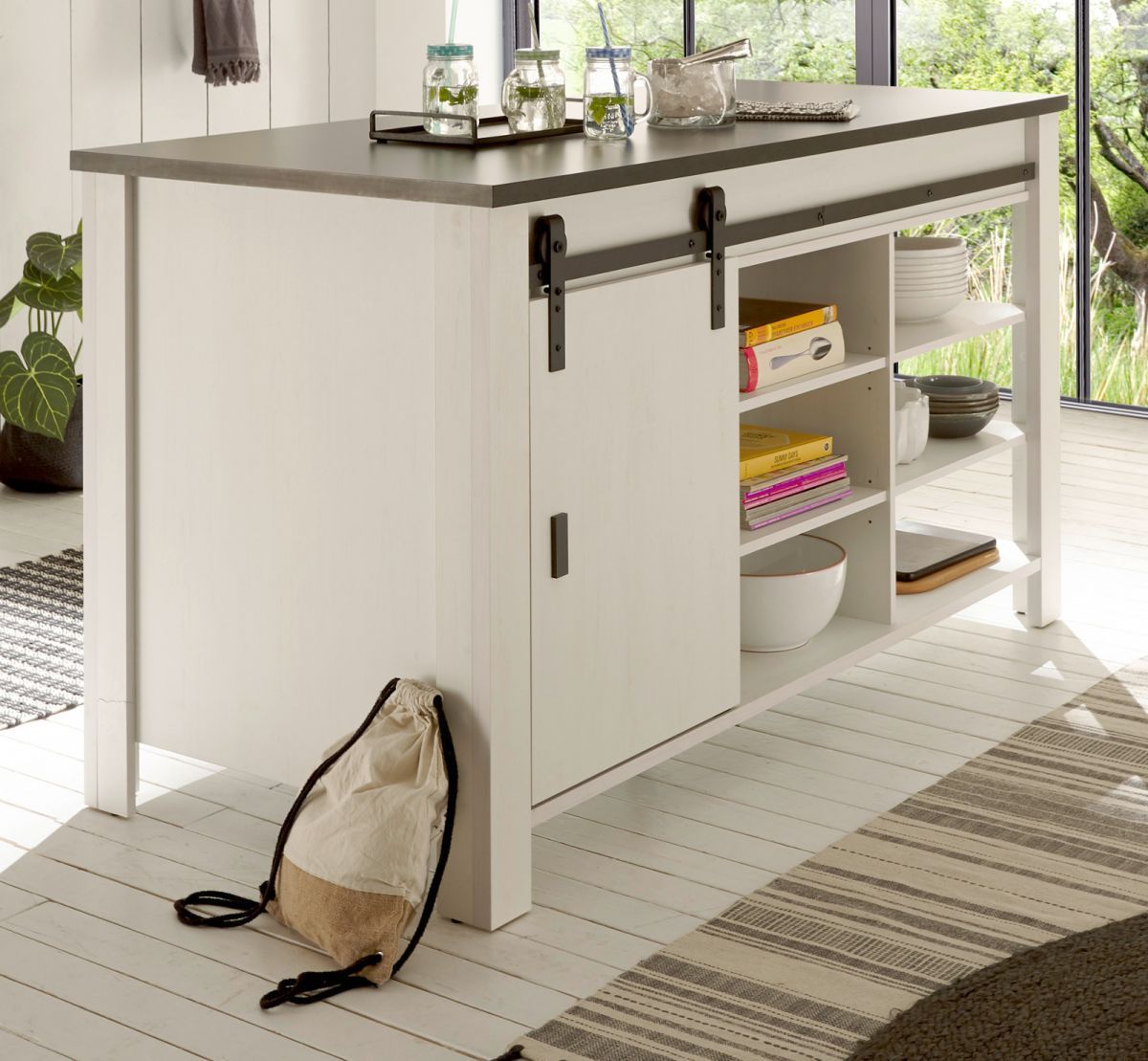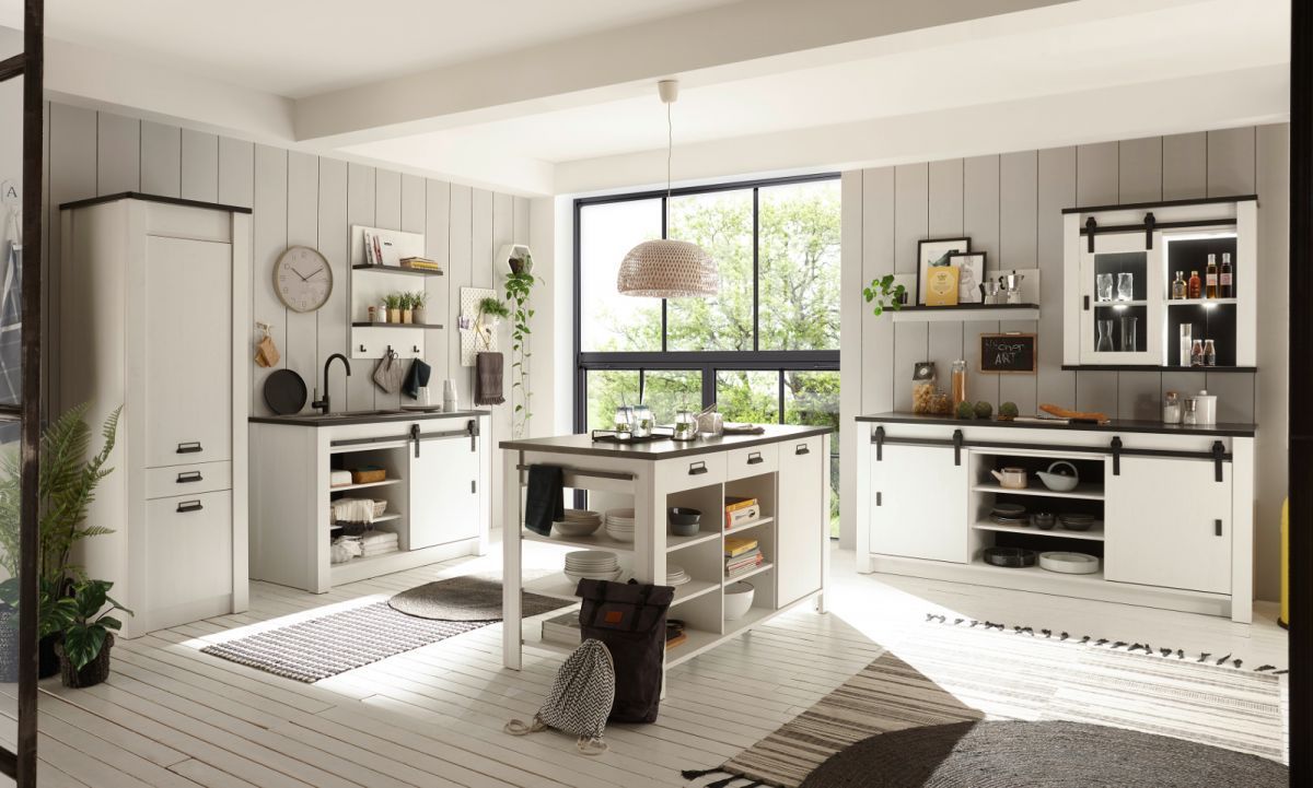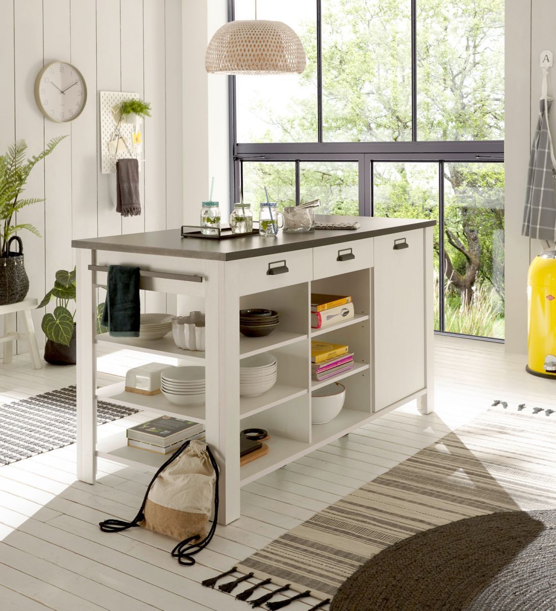 Küchenschrank Kücheninsel Küchentheke Tisch weiß Pinie Landhaus Stove 160 x 93 cm