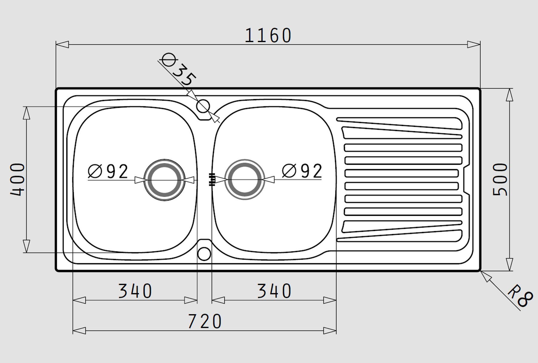 • Granitspüle Doppelbecken MEGALO 50x116 Grau mit langer Abtropffläche | Siphon im SET!