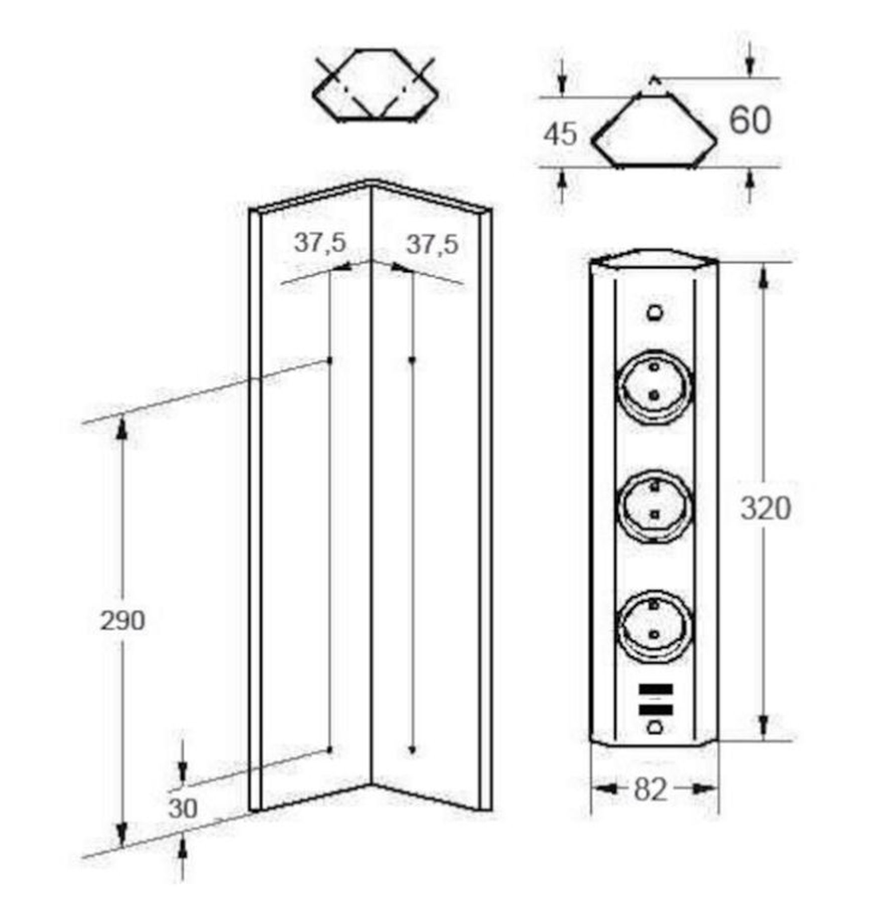 Küchensteckdose 3-fach Edelstahl Ecksteckdose USB A/C Steckdosenleiste Küche