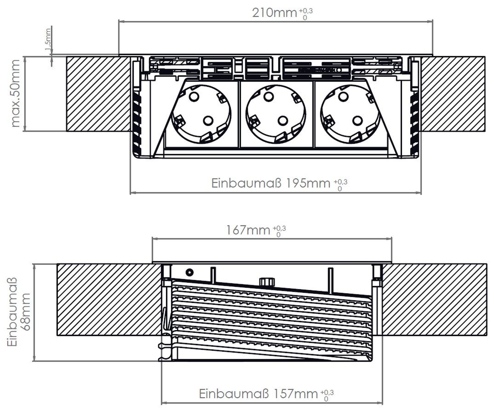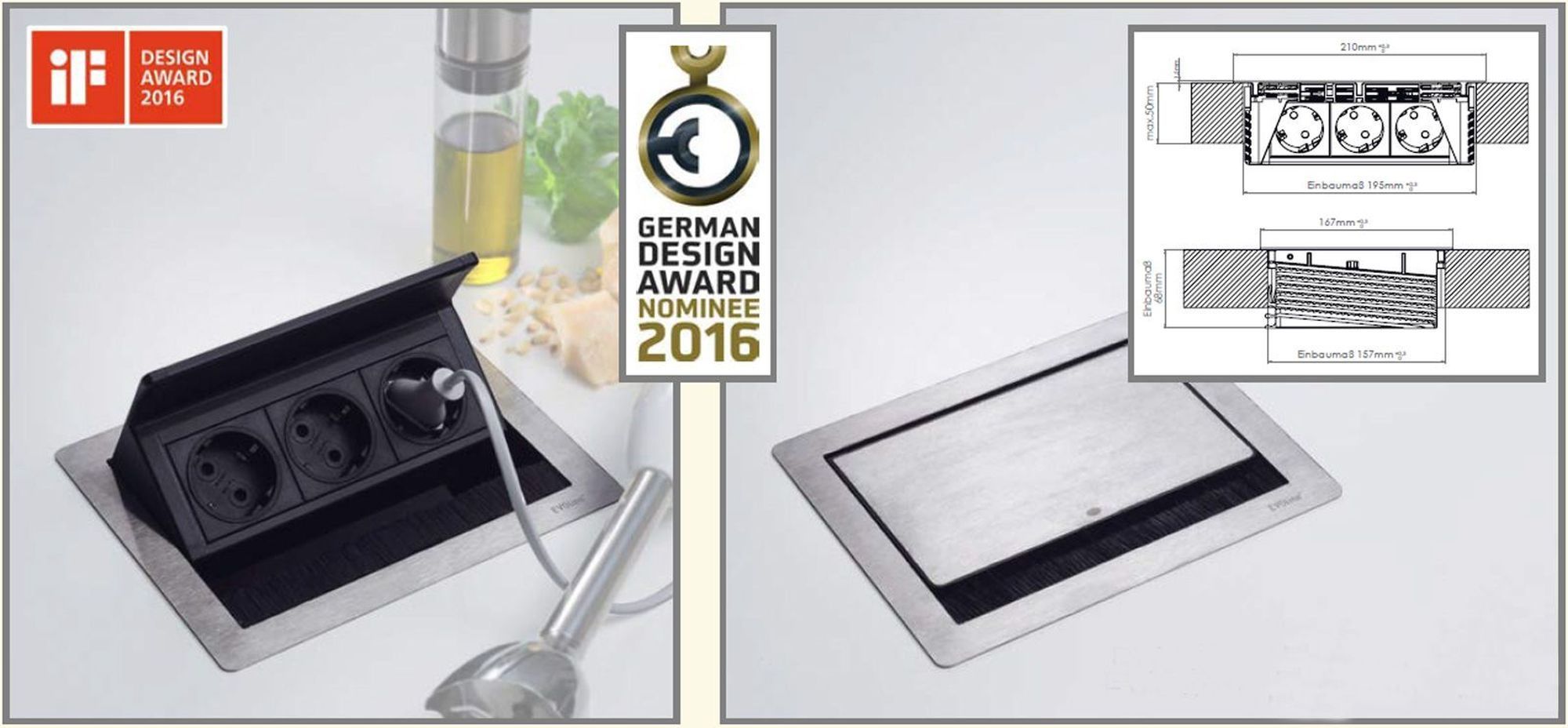 Küchensteckdose FlipTop 3-fach Edelstahl Einbausteckdose Küche Büro Schreibtisch