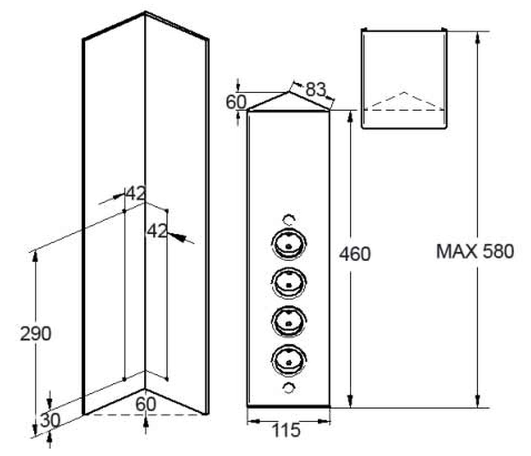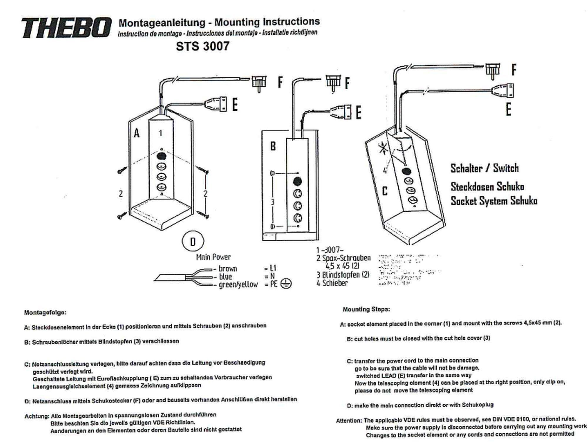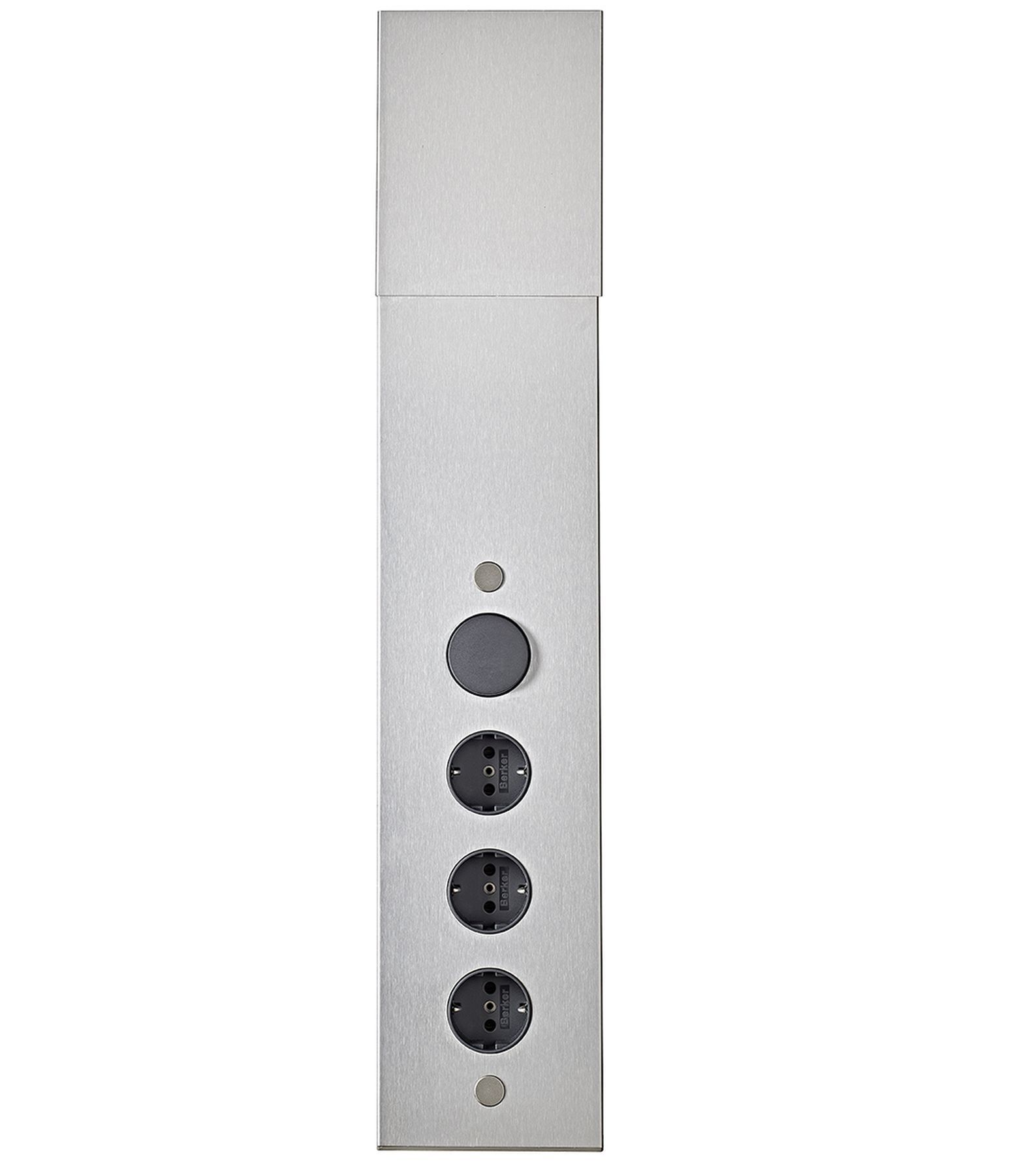 Küchensteckdose Riva 1 Schalter 3-fach Schuko Edelstahl Steckdosenleiste 46-58cm