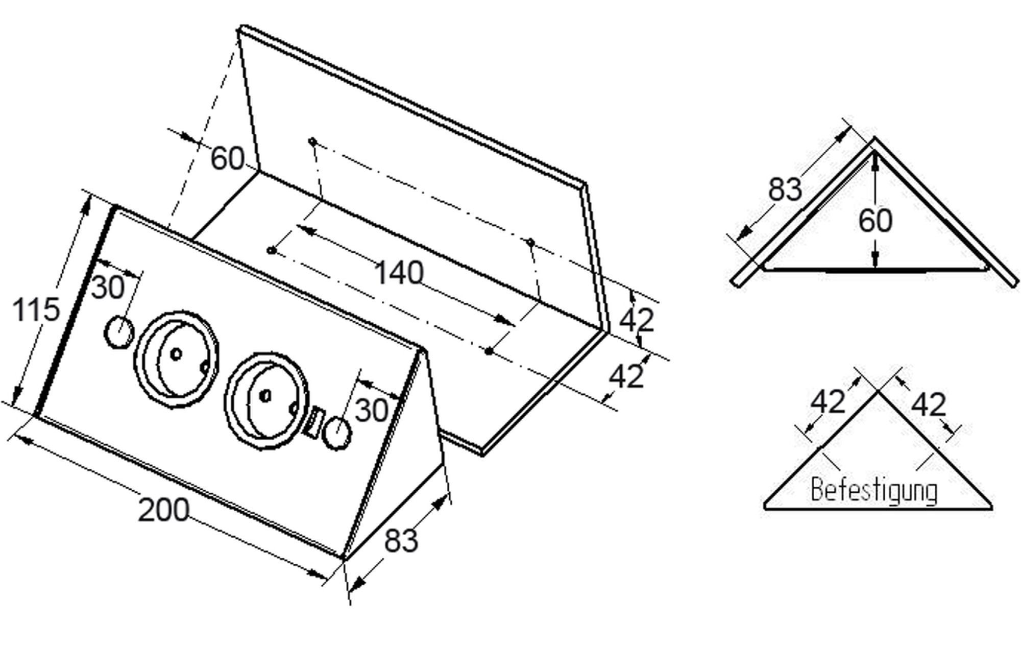 Küchensteckdose Riva mit USB A, 2-fach Ecksteckdose, Kombisteckdose
