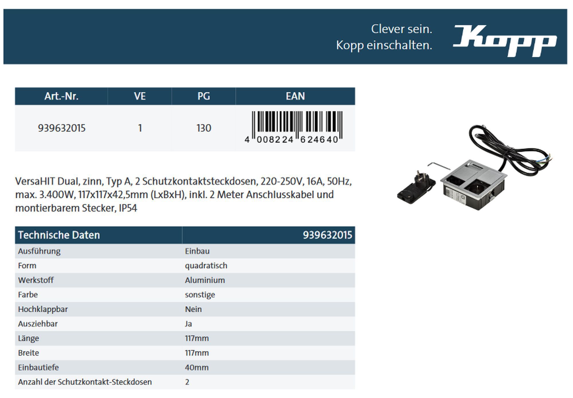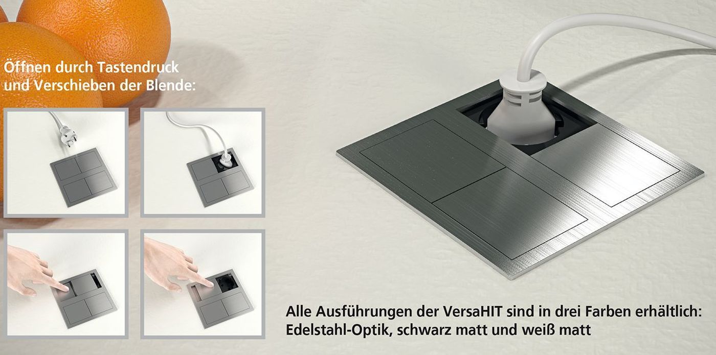 Küchensteckdose VersaHIT, Einbausteckdose Küche IP54, Arbeitsplatte