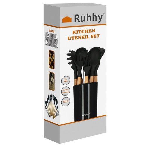 Küchenutensilien Set 11tlg Silikon mit Holz Griffen + Halter hitzebeständig
