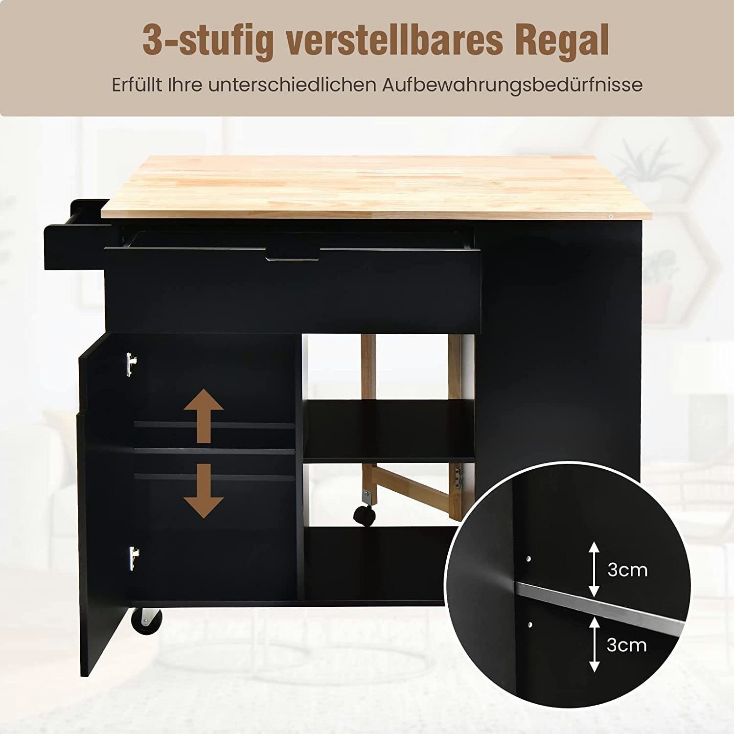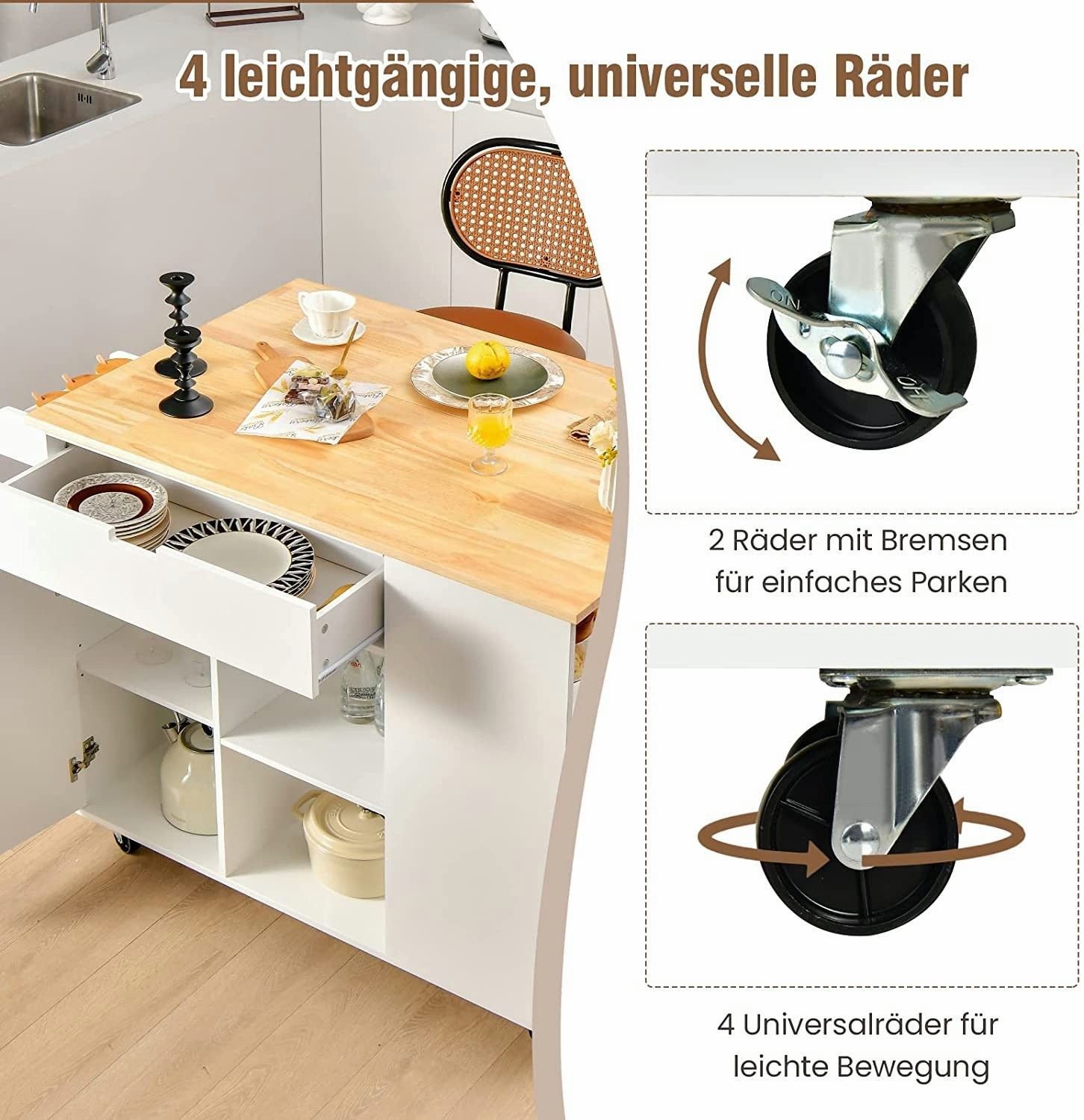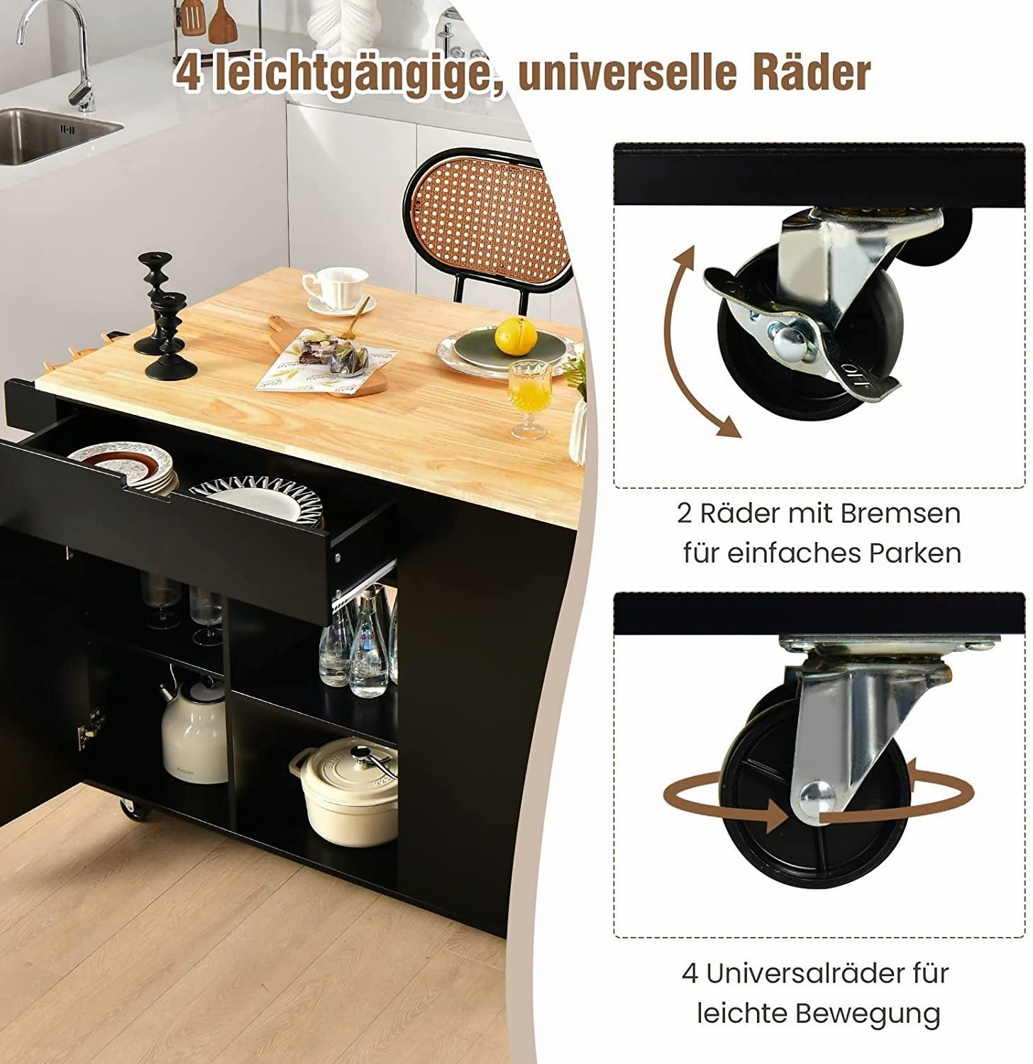 Küchenwagen mit ausziehbarer Arbeitsfläche, Servierwagen auf Rollen, Kücheninselwagen