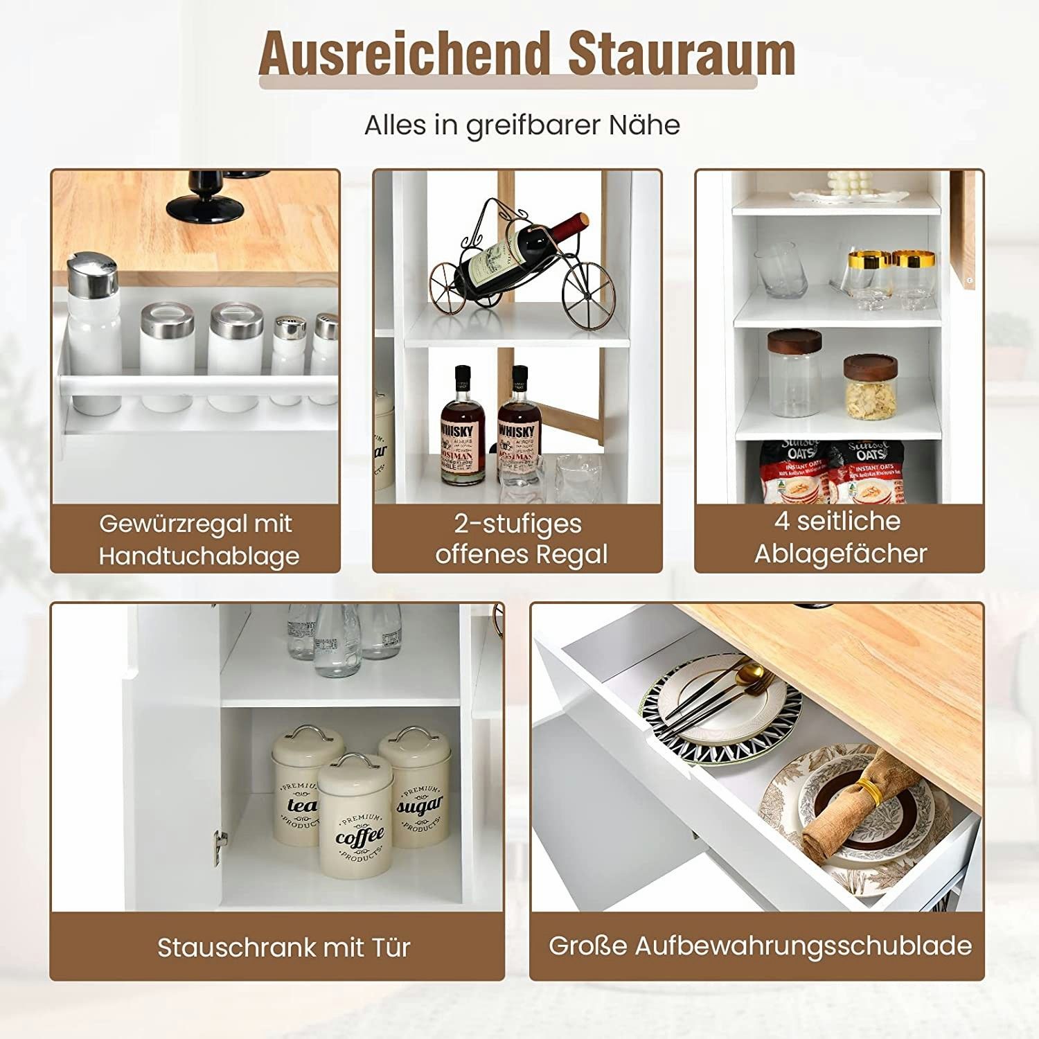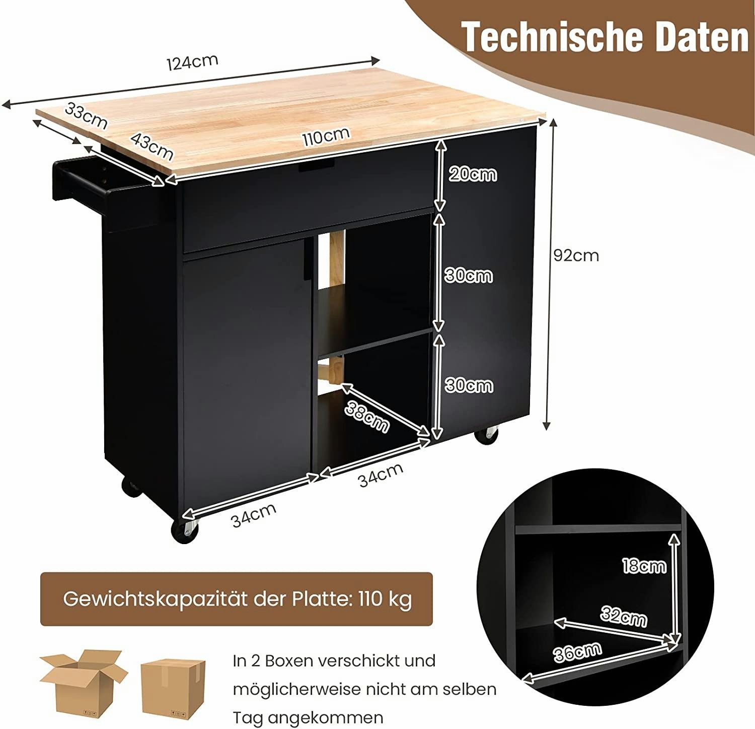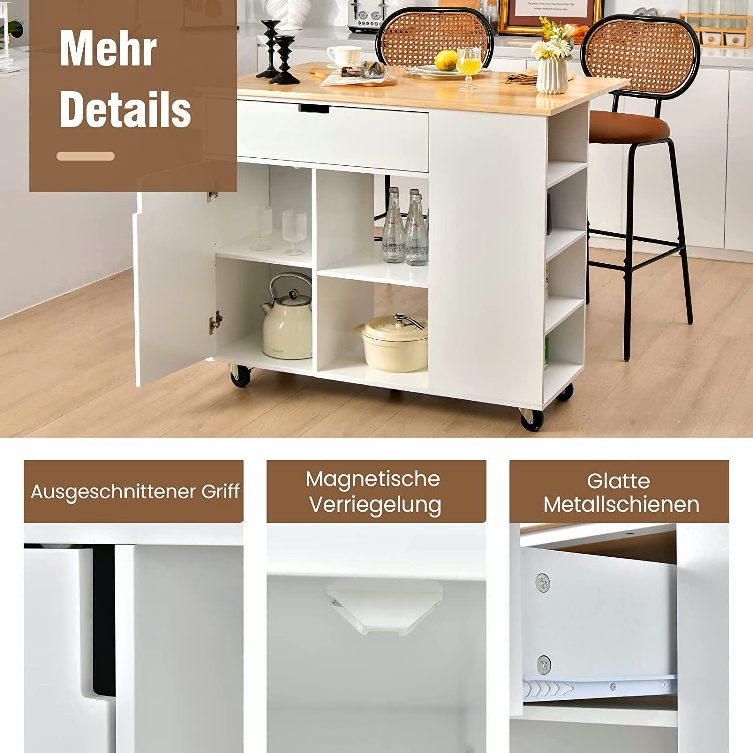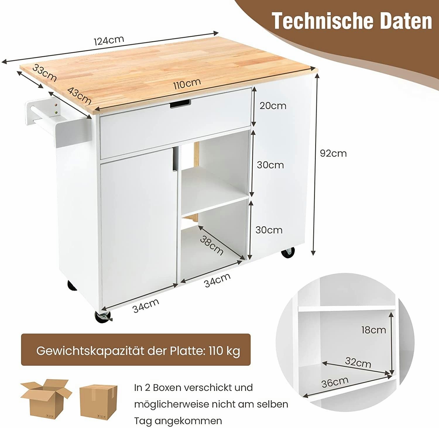 Küchenwagen mit ausziehbarer Arbeitsfläche, Servierwagen auf Rollen, Kücheninselwagen