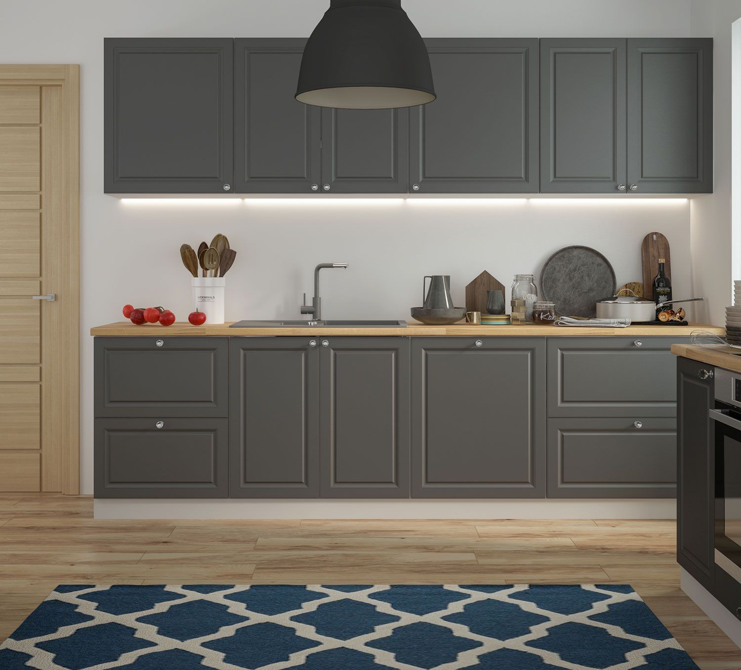 Küchenzeile "Amaro" Küchenblock 280cm grau Front umbragrau matt lackiert