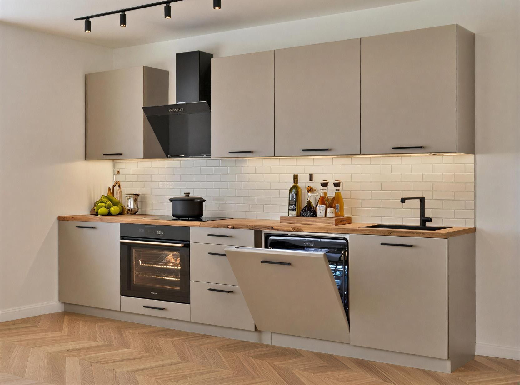 Küchenzeile AXIS 290 cm DW – Modernes Design & zeitloser Minimalismus Die Küchenzeile AXIS 290 cm DW steht für klare Linien, ausgewogene Proportionen und ein modernes, zeitloses Design. Die matten Fronten unterstreichen den minimalistischen Charakter der Küche und schaffen eine ruhige, ele