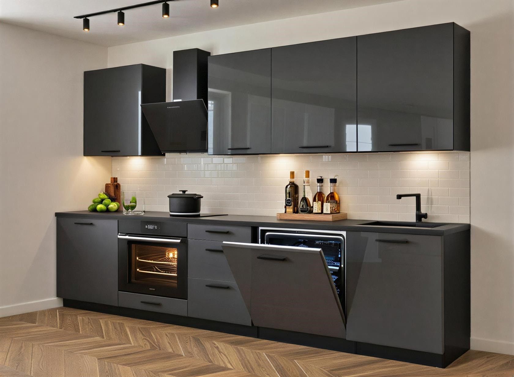Küchenzeile Axis 290 cm DW Schwarz Hochglanz, Matt- Küche 2,9m