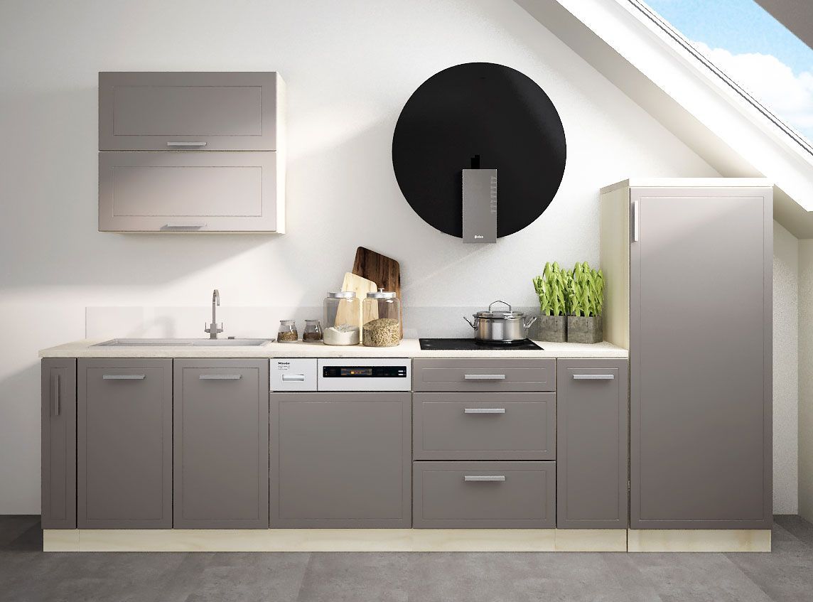 Küchenzeile Kvantum Mansardenküche 305cm Teilauszug Eiche Artisan beige