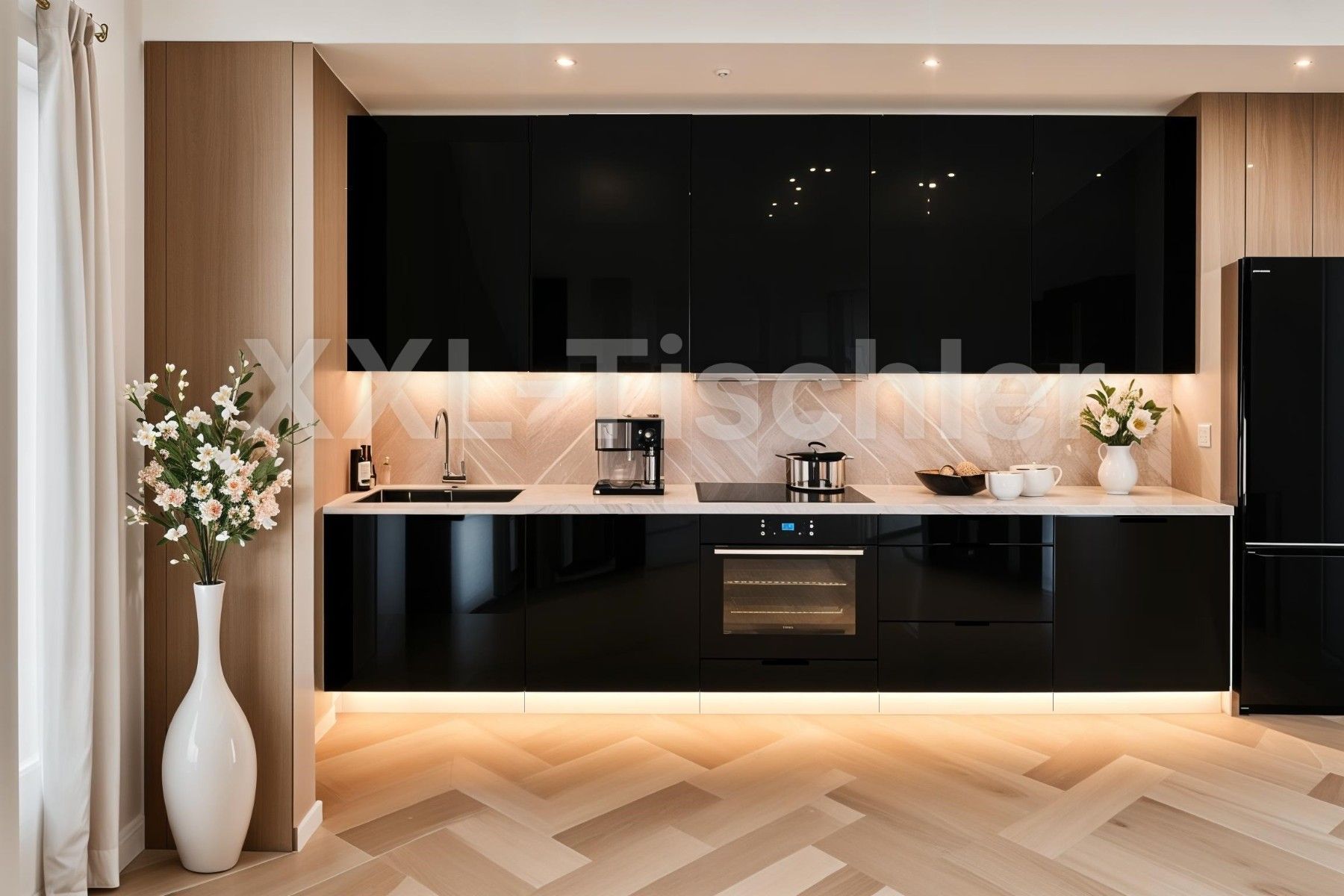 * * Küchenzeile LINEA 300cm Schwarz Hochglanz Weiß Matt Die Linea Küche vereint modernes Design mit höchster Funktionalität und durchdachtem Komfort für Ihr Zuhause. Ausgestattet mit dem Premium Box Schubladensystem in Kombination mit einem Soft-Close-Mechanismus , erleichtert sie das Öffnen der Sch