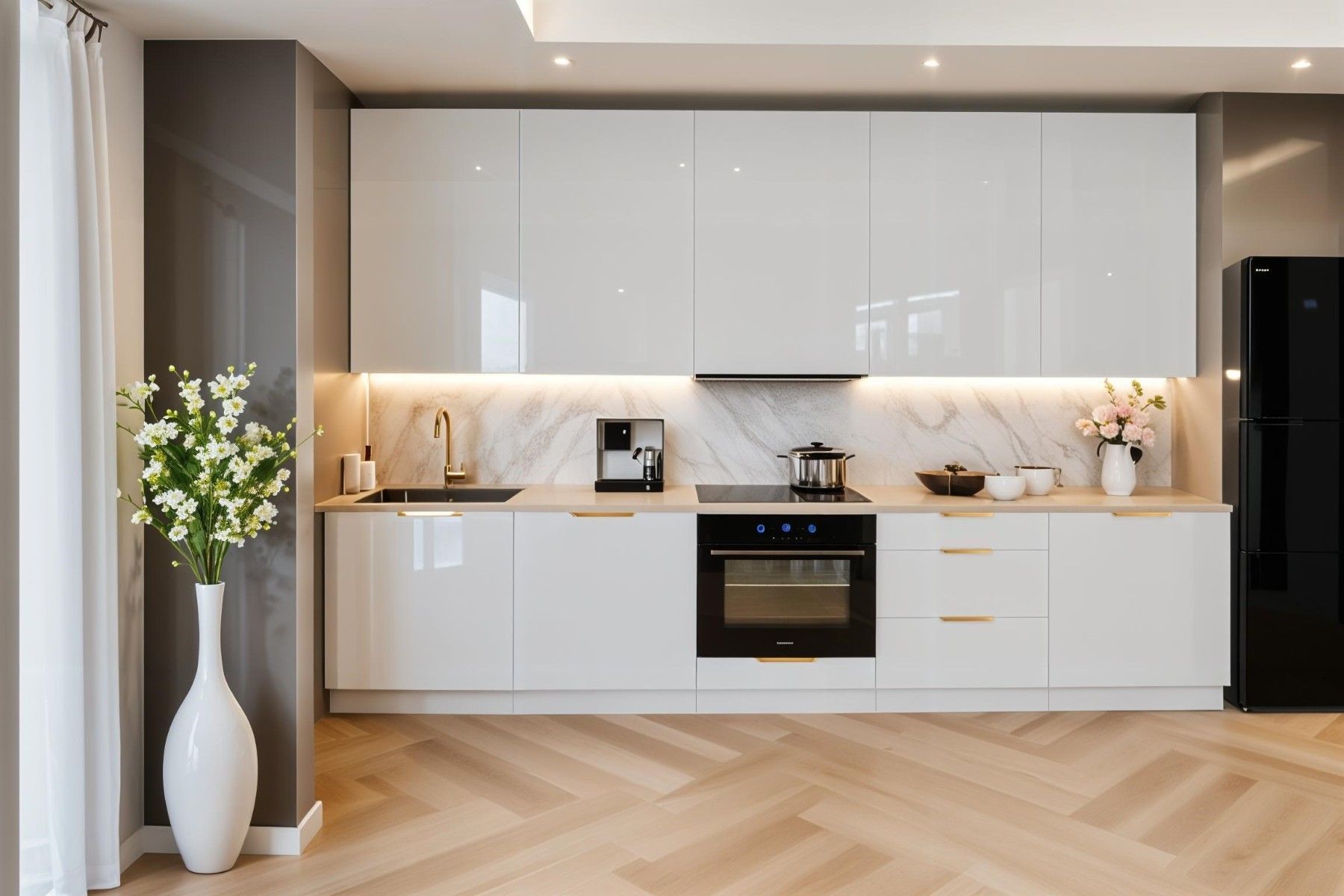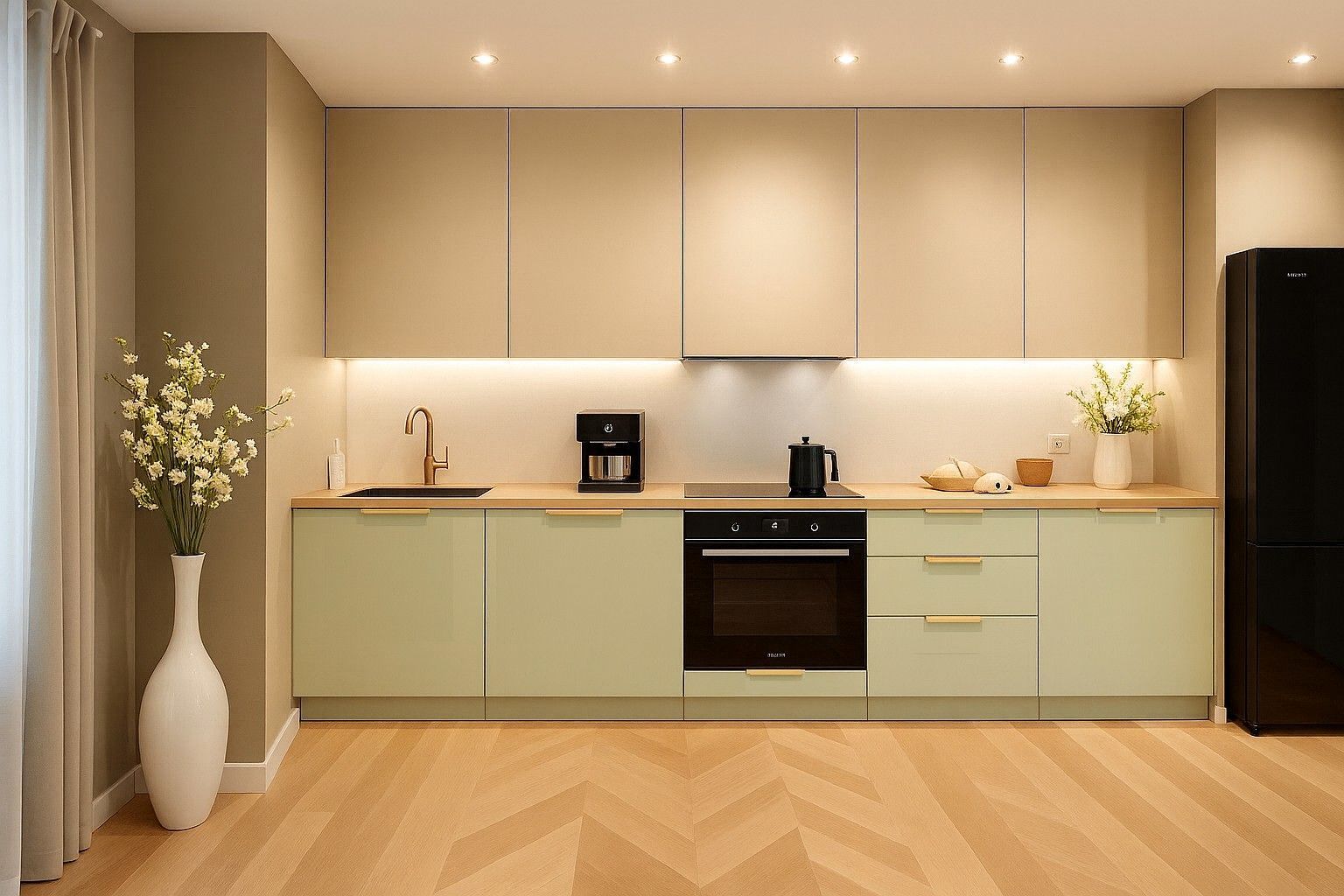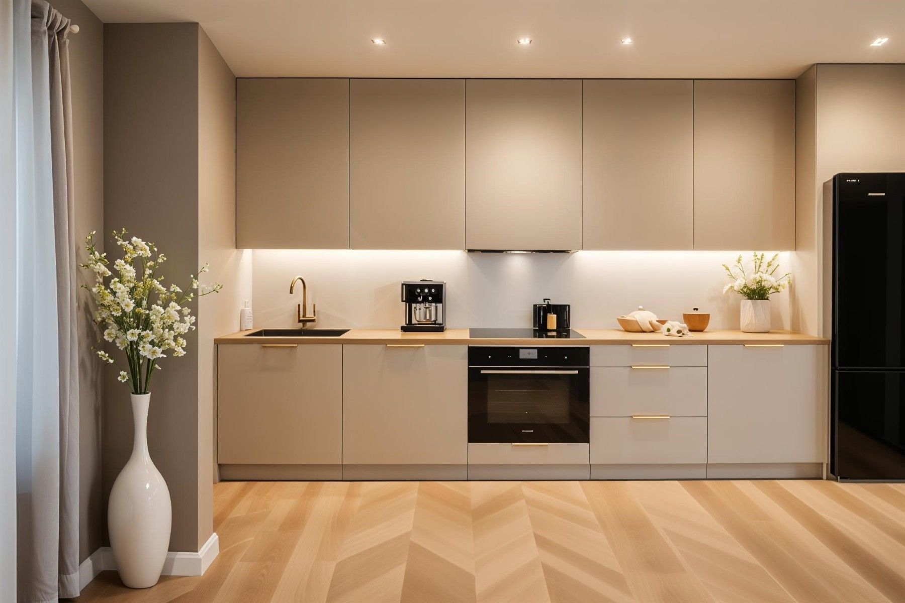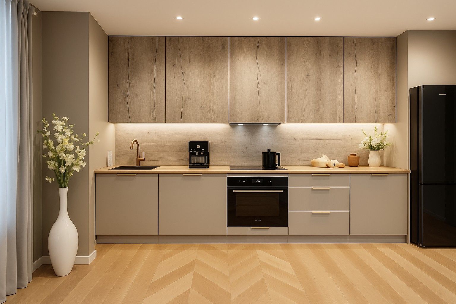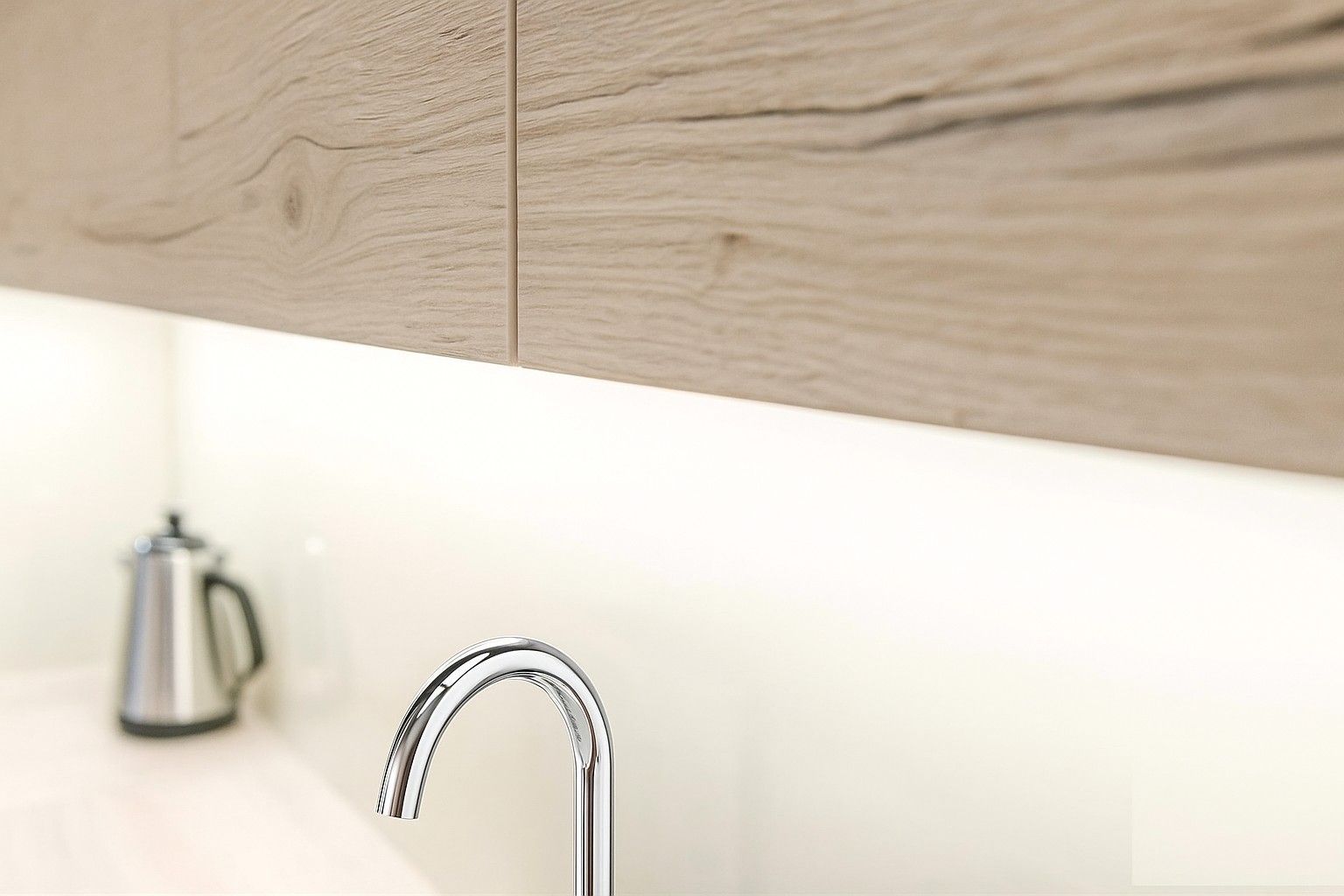 * * Küchenzeile LINEA 300cm Kaschmir -Halifax Eiche Weiß Die Linea Küche vereint modernes Design mit höchster Funktionalität und durchdachtem Komfort für Ihr Zuhause. Ausgestattet mit dem Premium Box Schubladensystem in Kombination mit einem Soft-Close-Mechanismus , erleichtert sie das Öffnen der Sc