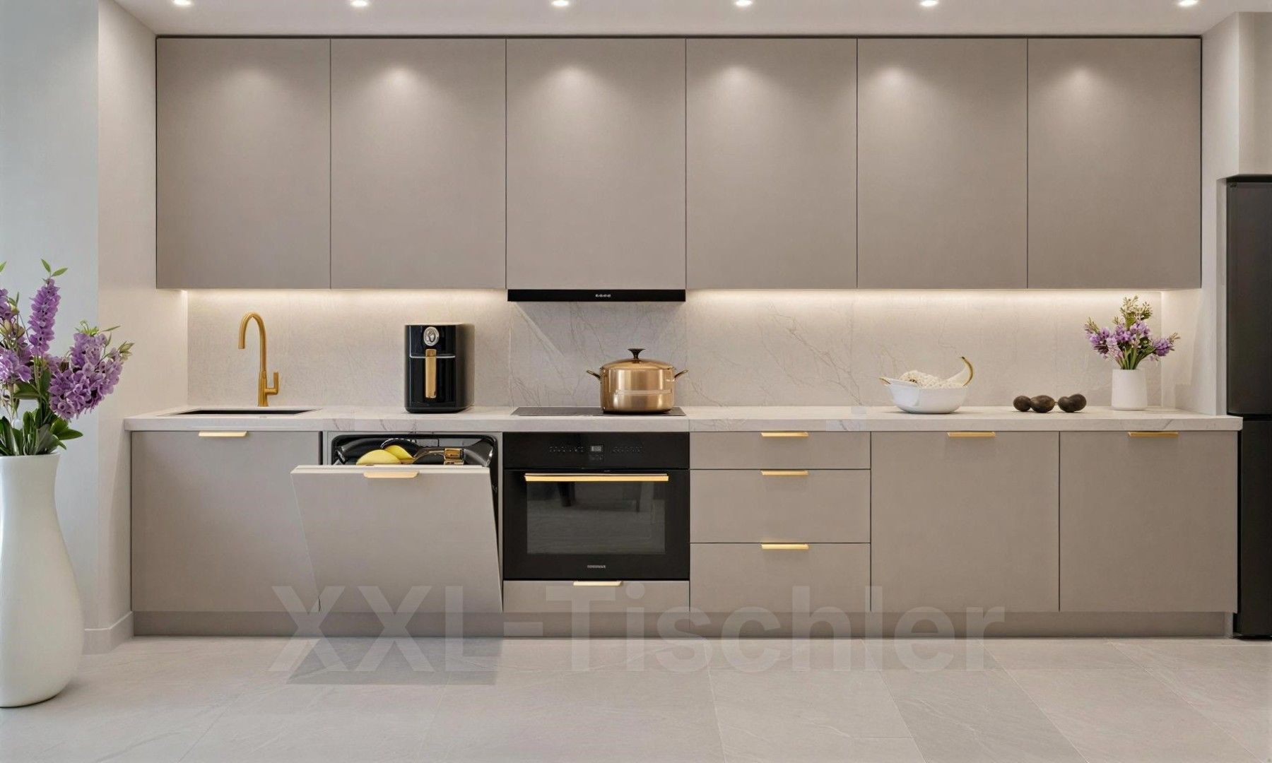 Küchenzeile LINEA 360cm DW Kaschmir Matt Ware direkt vom Hersteller, ohne Zwischenhändler Direkt vom Hersteller Beschreibung Die Linea Küche vereint modernes Design mit höchster Funktionalität und durchdachtem Komfort für Ihr Zuhause. Ausgestattet mit dem Premium Box Schubladensystem in Kombination