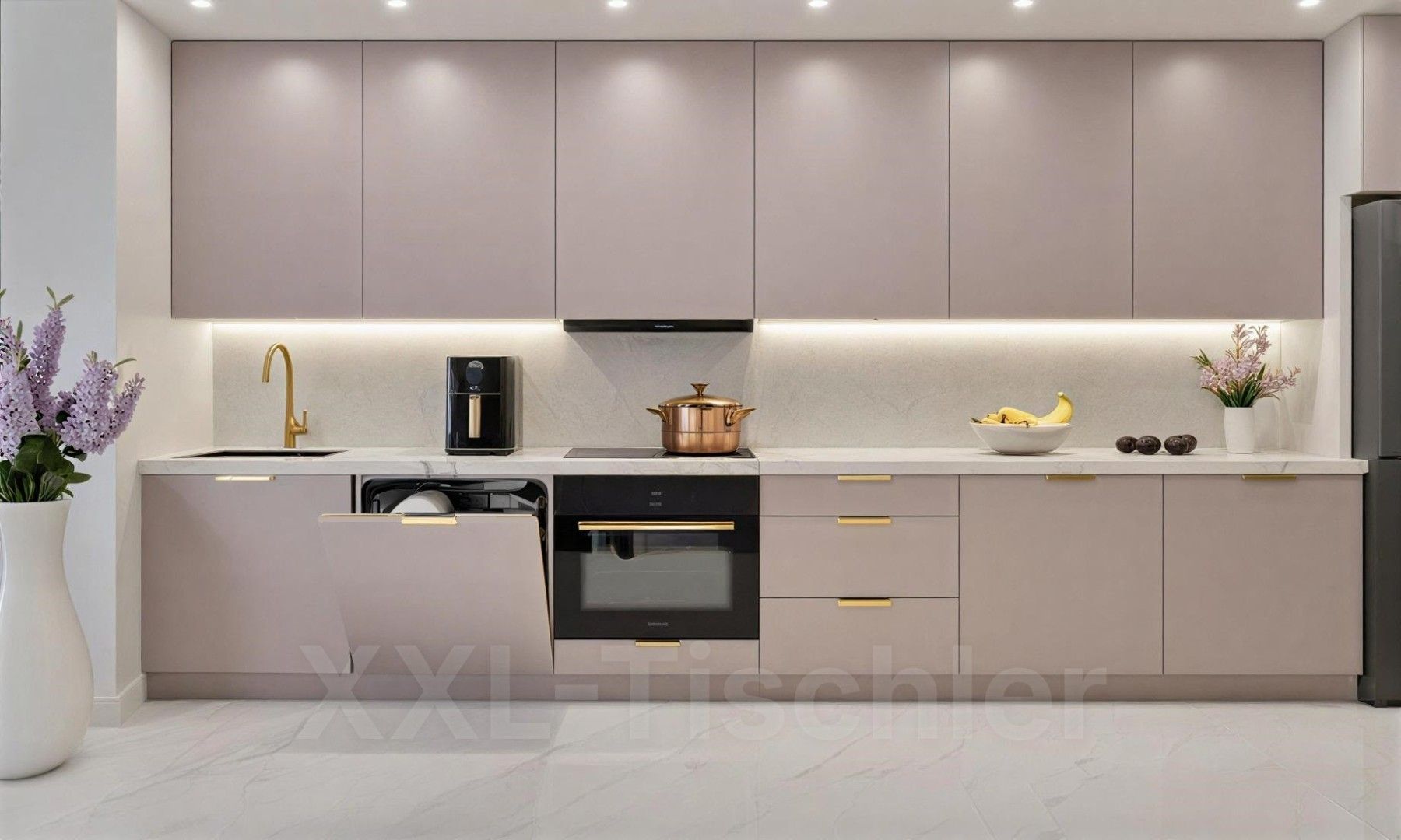 * * Küchenzeile LINEA 360cm DW Puderrosa Die Linea Küche vereint modernes Design mit höchster Funktionalität und durchdachtem Komfort für Ihr Zuhause. Ausgestattet mit dem Premium Box Schubladensystem in Kombination mit einem Soft-Close-Mechanismus , erleichtert sie das Öffnen der Schubladen, erhöht