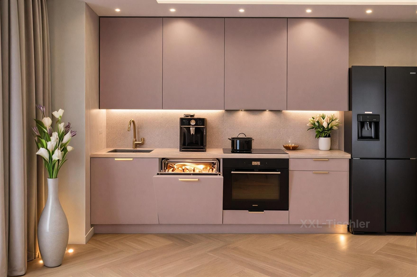Küchenzeile Linea DW 240 cm Puderrosa Matt-Soft Close- Premium Box- Einbauküche 2,4 m