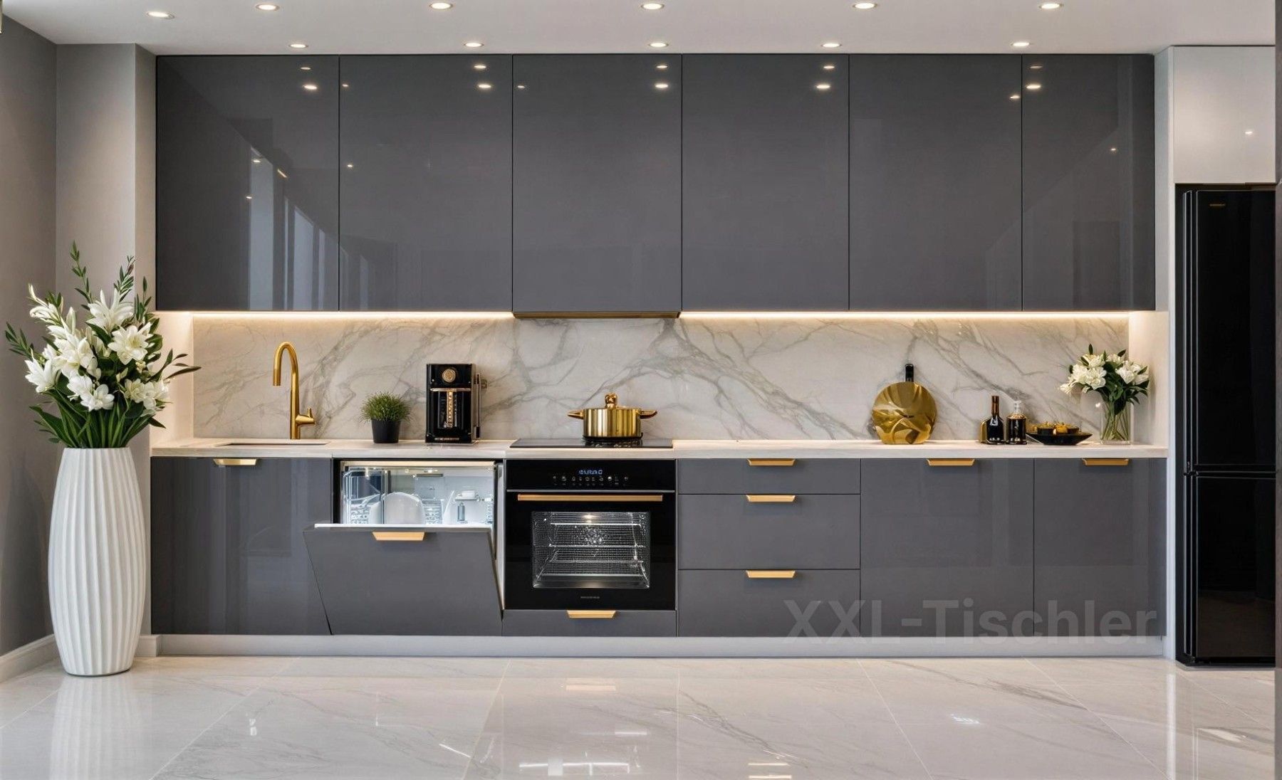 Küchenzeile Linea DW 340 cm Grau Hochglanz-Soft Close- Premium Box- Einbauküche 3,4 m