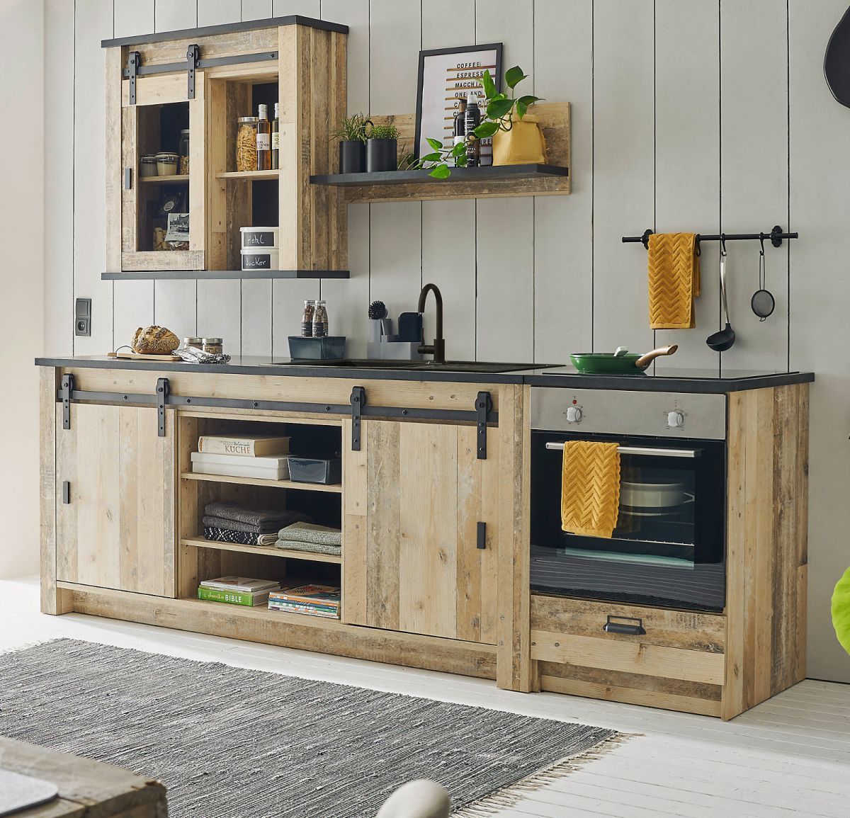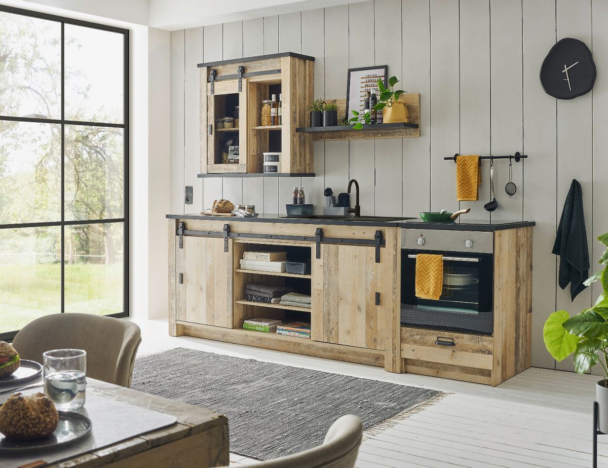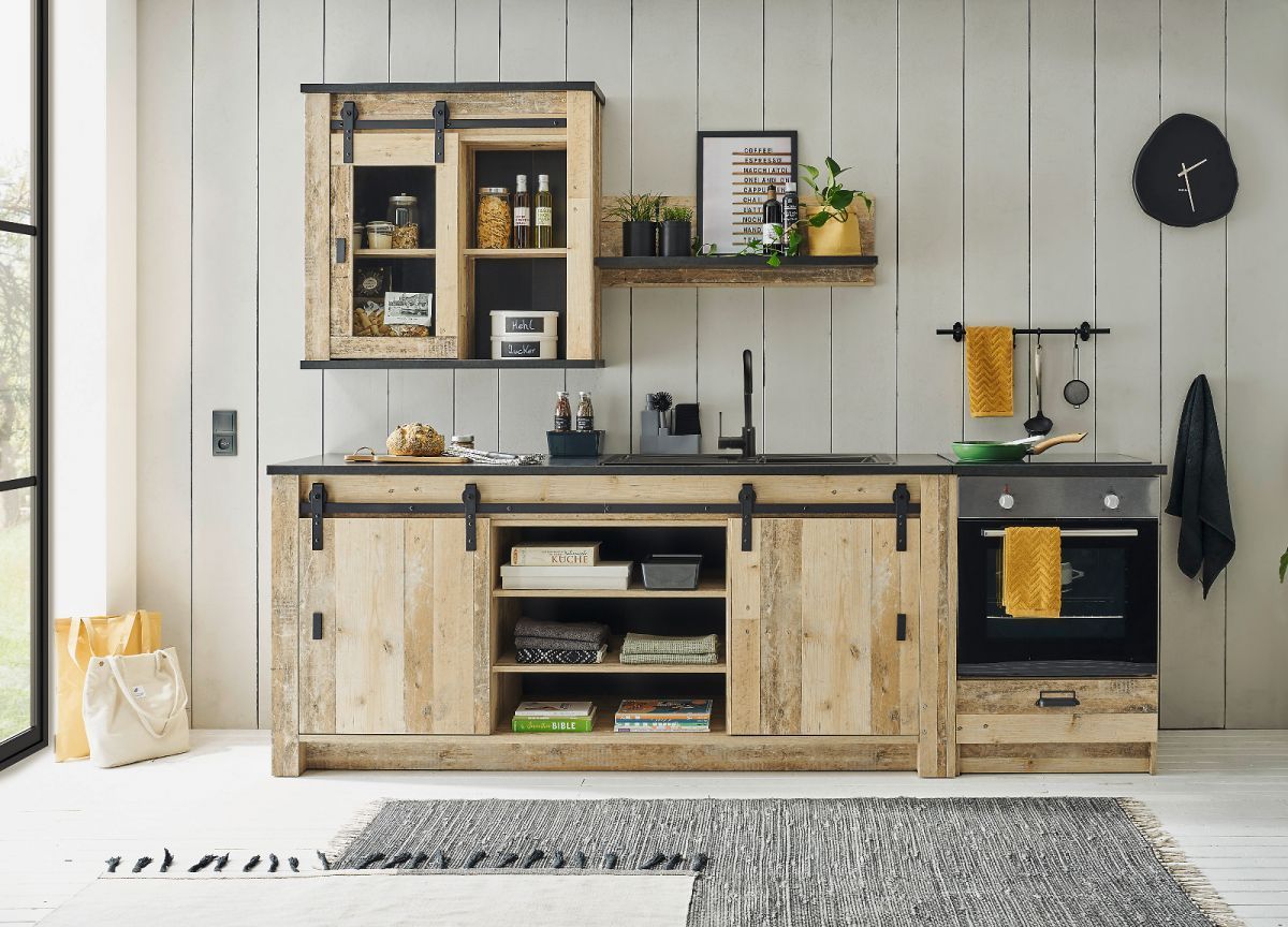 Küchenzeile Single-Küche Küche Set 4-tlg Used Wood Vintage Küchenblock Stove 264 cm