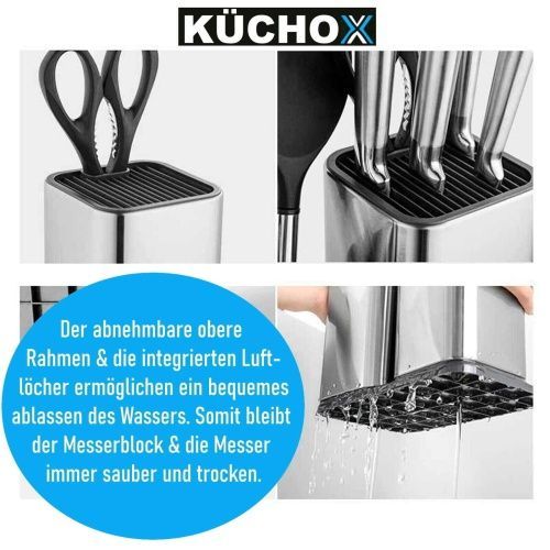 KÜCHOX Edelstahl Messerblock ohne Messer Küchenhelfer Organizer unbestückt 2in1