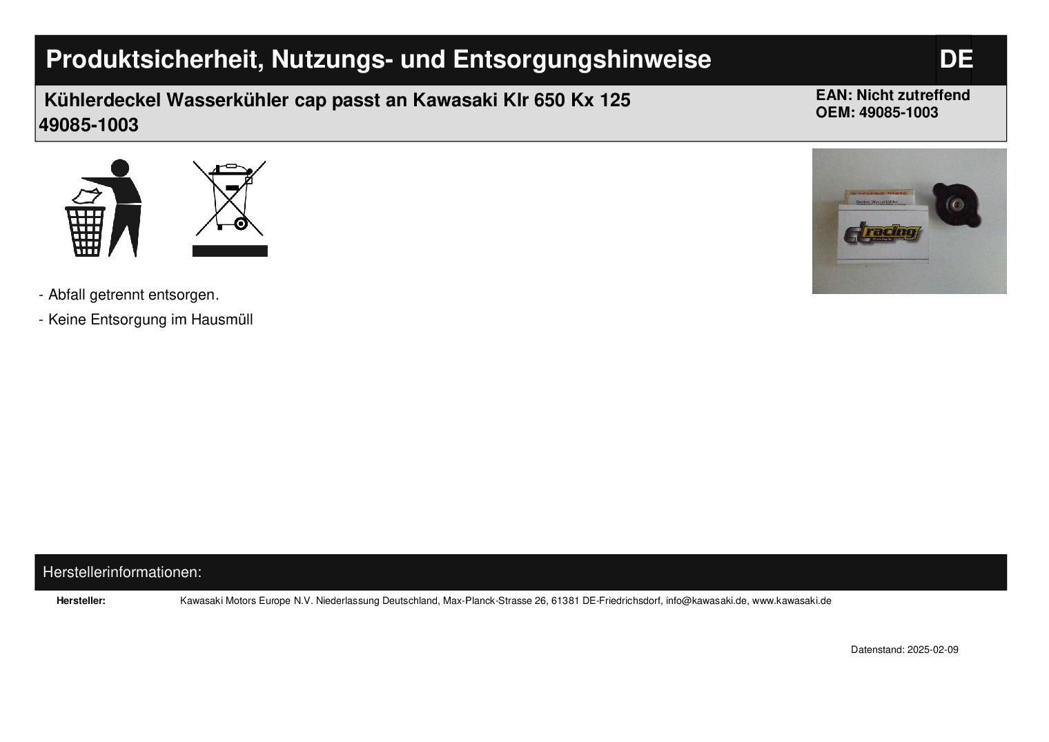 Kühlerdeckel Wasserkühler cap passt an Kawasaki Klr 650 Kx 125 49085-1003