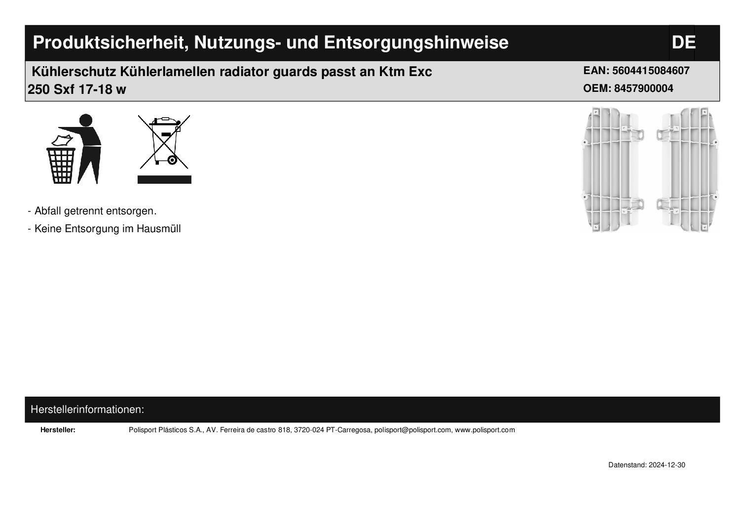 Polisport Kühlerschutz Kühlerlamellen radiator guards passt an Ktm Exc 250 Sxf 17-18 w