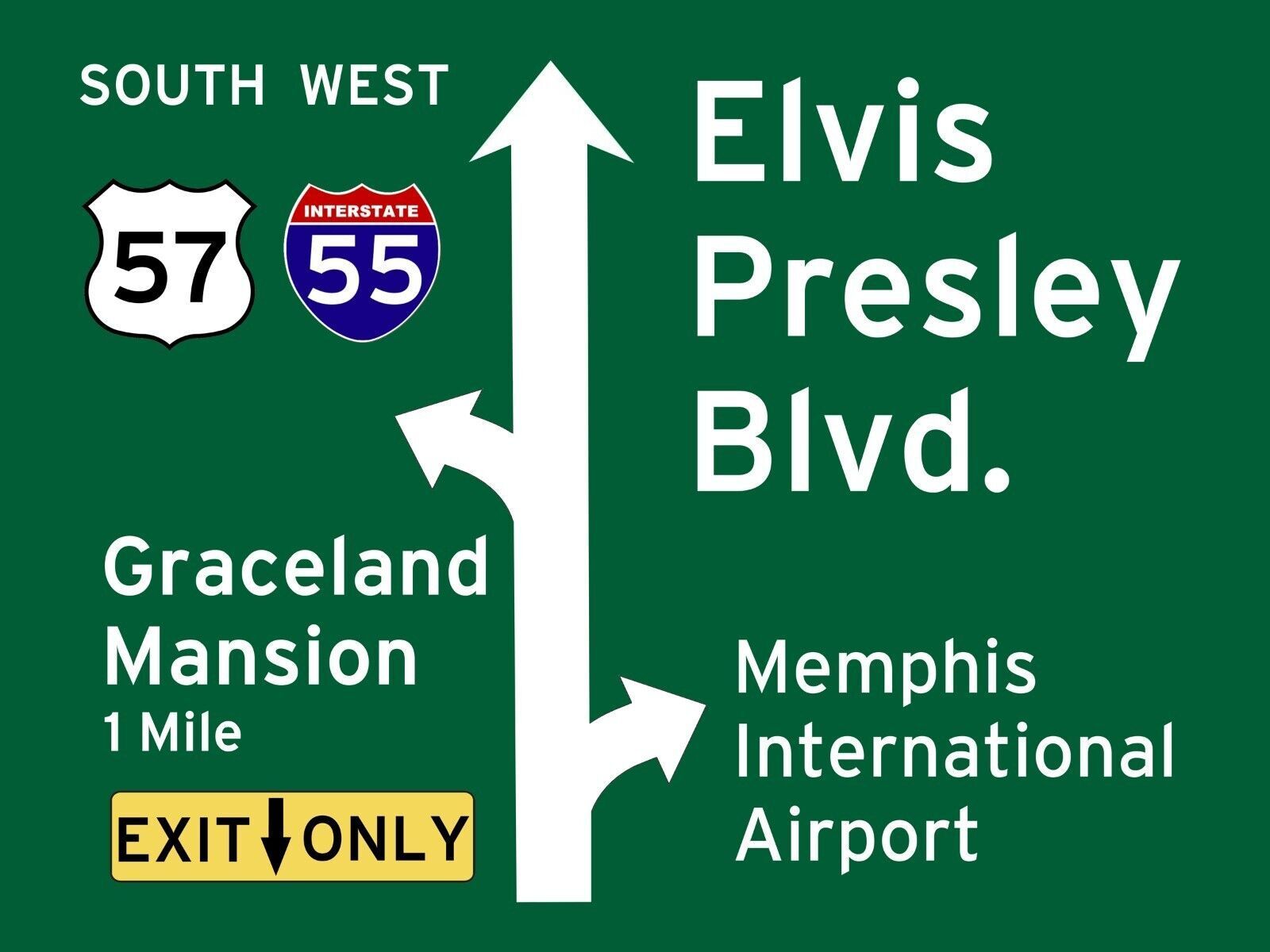 cooles XL Magnetschild für den Kühlschrank ! ELVIS PRESLEY Blvd. - Memphis - Graceland Mansion Replik eines US Interstate Strassenschildes ! Größe des Magnetschildes ca. 10 x 7,5 cm Achtung: Nicht geeignet für Kinder unter 3 Jahren