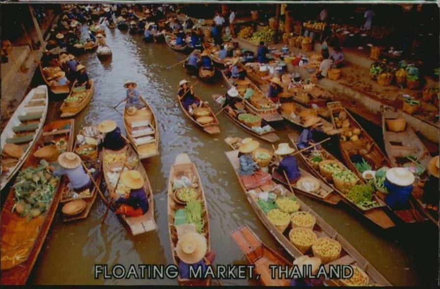 sehr schöne Magnetkarten , farbenprächtige Aufnahmen vom schwimmenden Markt den die meisten Urlauber ja im wahrsten Sinne des Wortes verpennen, da man um 5h dort sein müßte... 5 x 7,5 cm angebot : 6 bestellen und per Bank bezahlen = 16 Euro incl Versandkosten