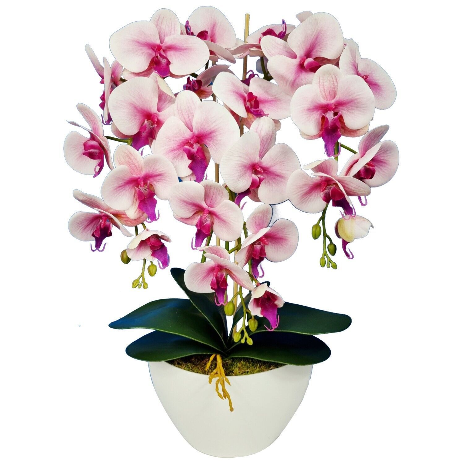 Künstliche Orchideen Weiß Rosa Weiß Deko Topf wie Echt 60cm hoch
