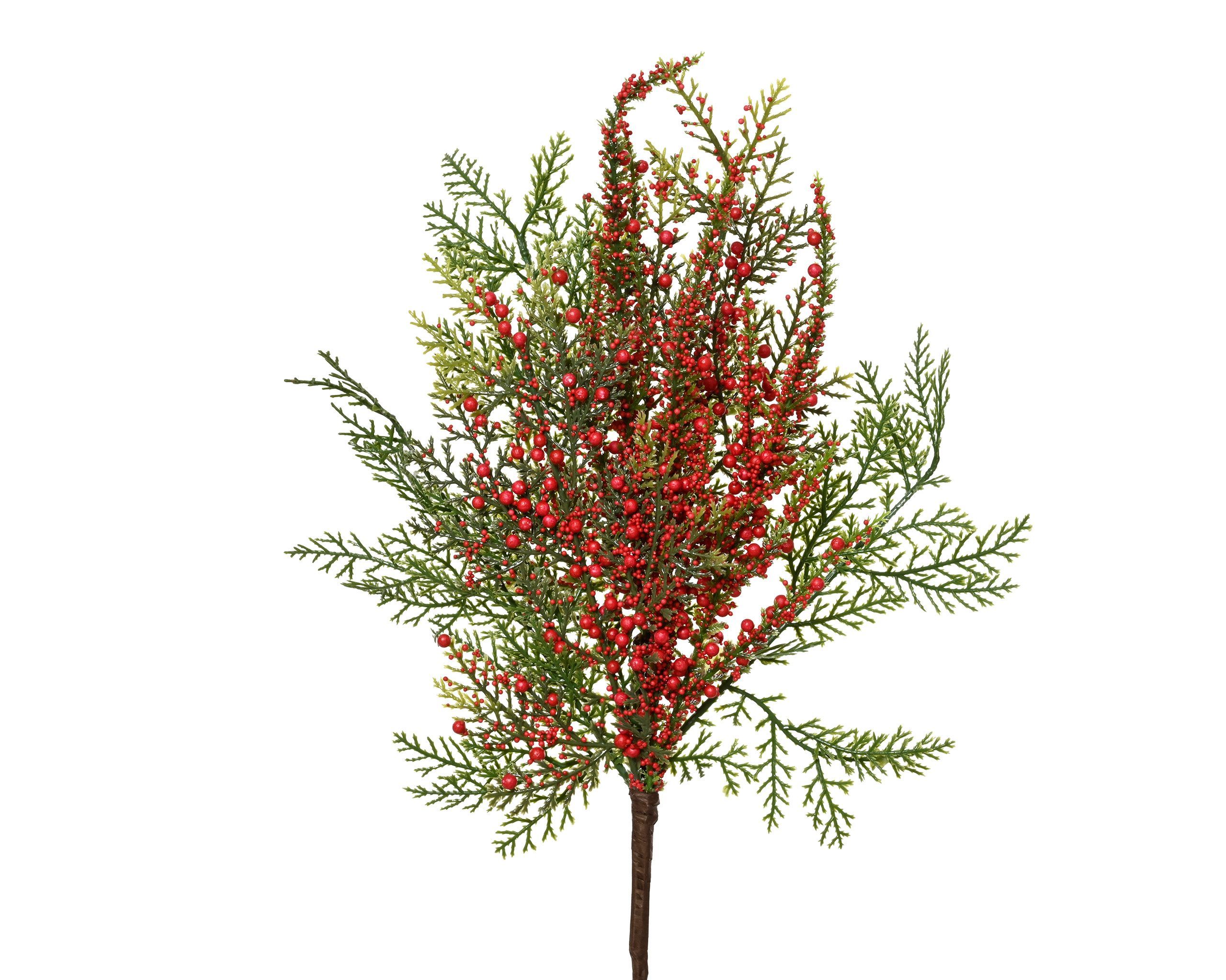 Künstlicher Beerenzweig 50cm mit roten Beeren Grün / Rot