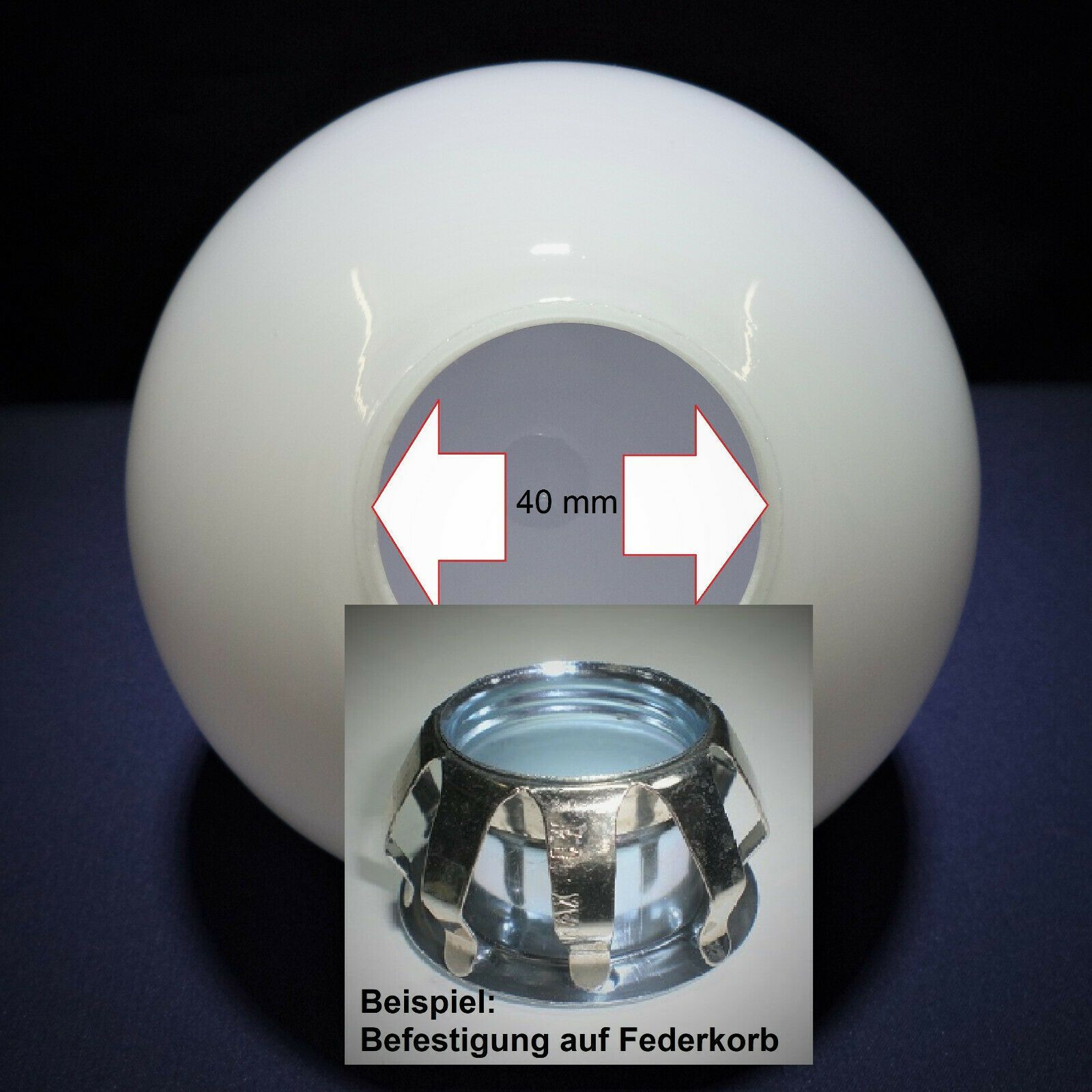 Kugel Opalglas weiß glänzend, Ersatzglas - Öffnung Loch / Aufnahme Ø ca.40mm