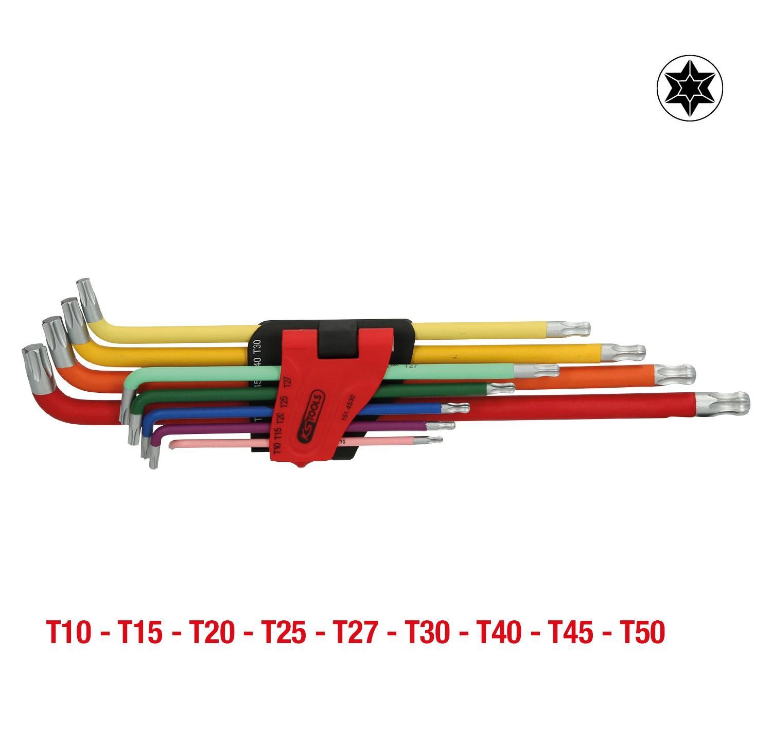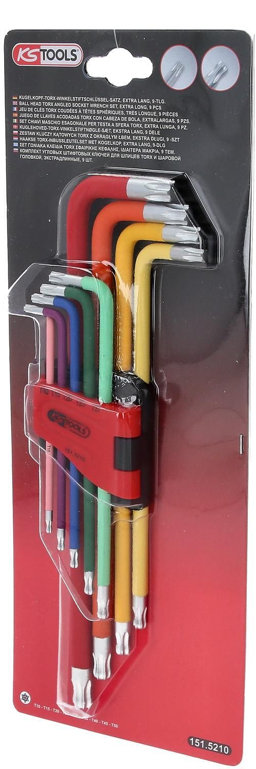 KS TOOLS Kugelkopf-Torx-Winkelstiftschlüssel-Satz, extra lang und 108° abgewinkelt, 9-tlg