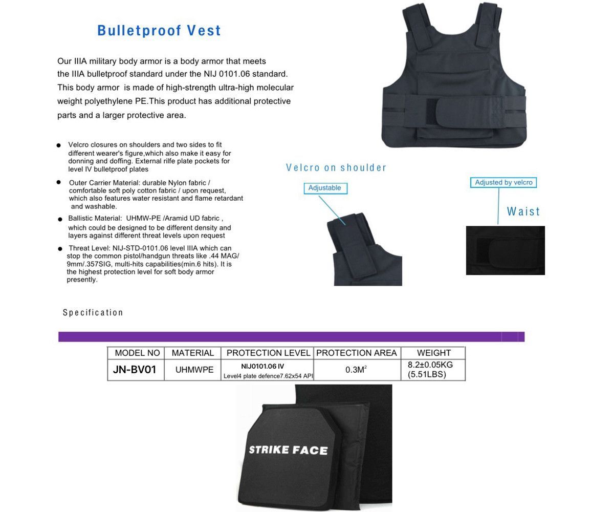 Kugelsichere Ballistische Schutzweste SK 1 NIJ-III A Schusssicher bis 9 mm Para