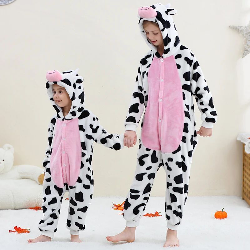 Kuh Kigurumi Onesie Kinder Madchen Tier Cosplay Pyjamas Plusch Winter Halloween