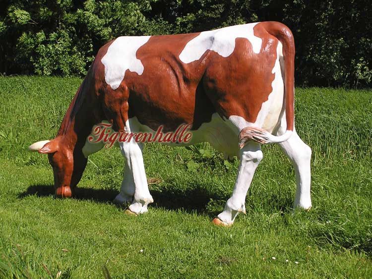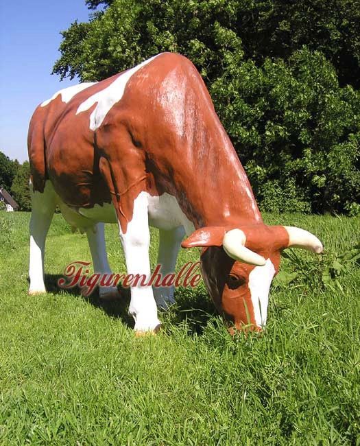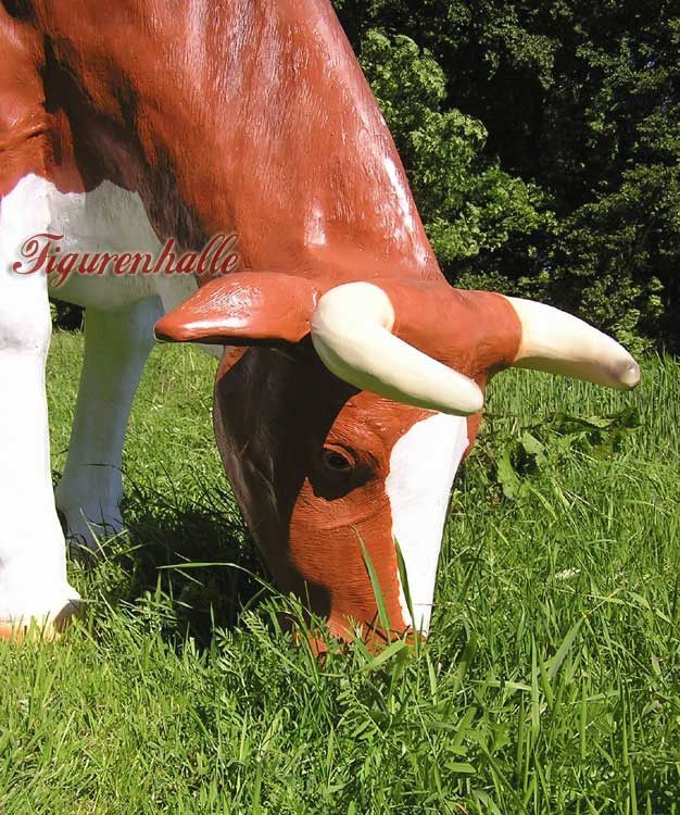 Kuh lebensgroß lebensecht Figur Aufstellfigur Deko fressend grasend Statue